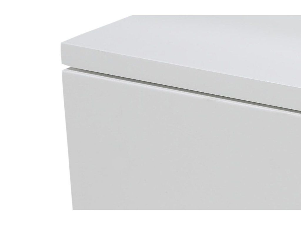 Specifikace: Korpus z bíle lakovaného MDF s dřevěnou podnoží zajišťuje stabilitu a dlouhou životnost. Zásuvka poskytuje praktický úložný prostor pro noční potřeby.