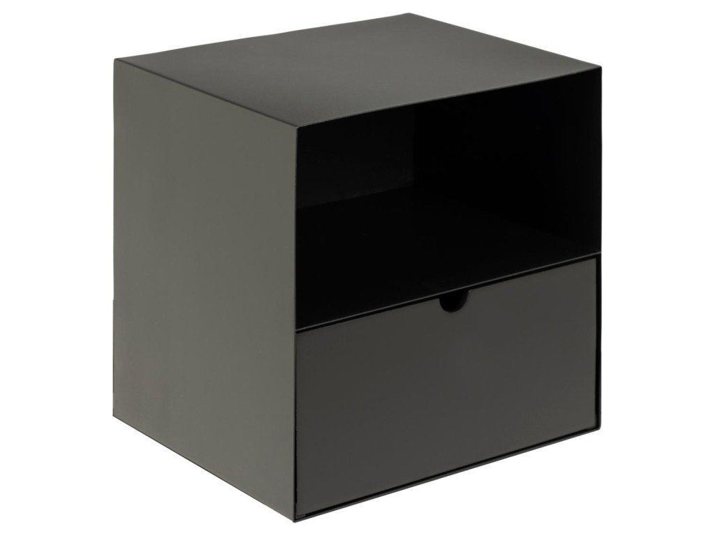 Moderní nástěnný noční stolek Joliet je ideálním řešením pro milovníky industriálního stylu, kteří chtějí ušetřit místo na podlaze. Kombinace černého kovu s matným práškovým nástřikem a lakované MDF zásuvky působí elegantně a nadčasově v každé stylové ložnici či pracovně.