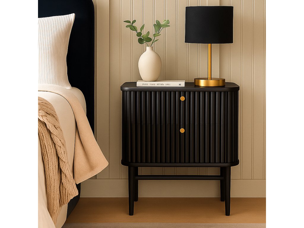 Nadčasový design: Noční stolek má zaoblenou siluetu a jemnou žebrovanou texturu pro moderní a sofistikovaný vzhled.
