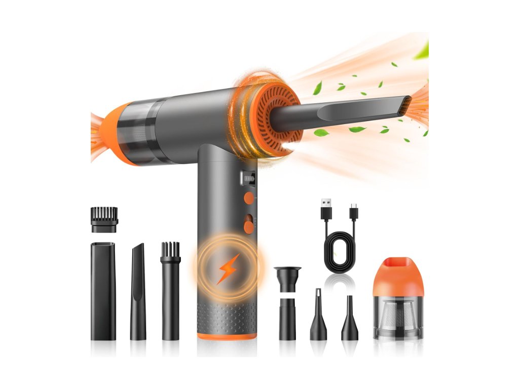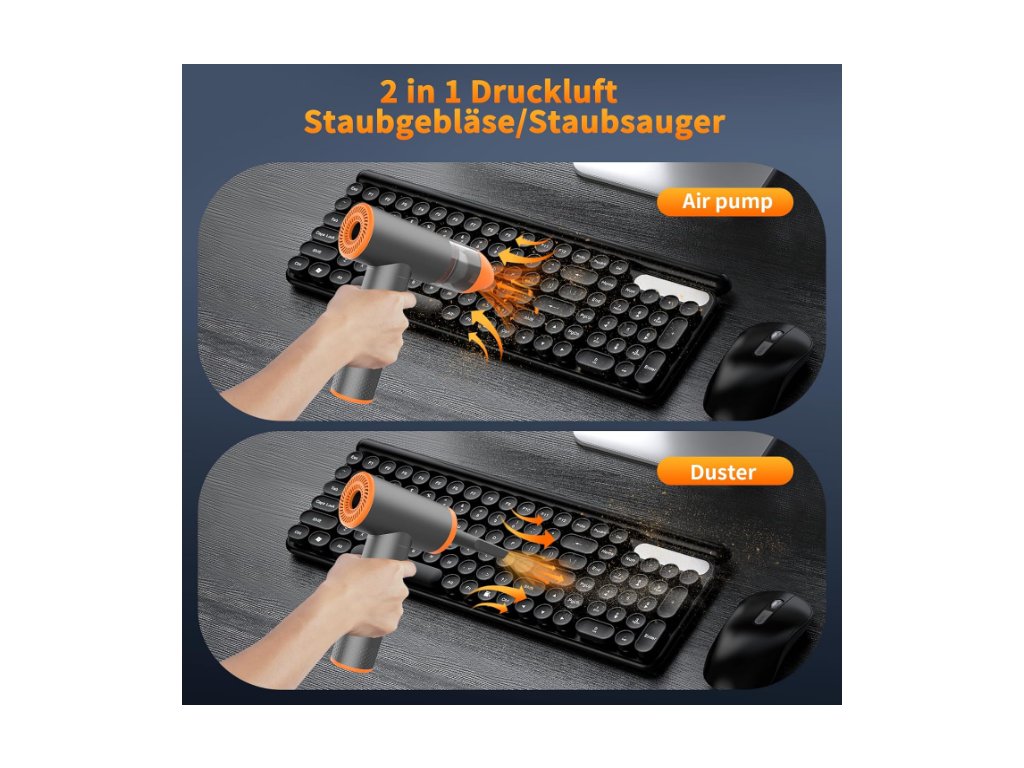 - Kombinace prachového ventilátoru a vzduchového spreje Náš počítačový vysavač klávesnice s designem vakuového vysavače dva v jednom má 8 trysek pro celou řadu účelů. Perfektní pro auta, počítače, klávesnice, okenní sloupce, pohovky, dílny atd. Lze jej použít nejen k čištění, ale také k nafouknutí plaveckých kruhů, nafukovacích postelí atd