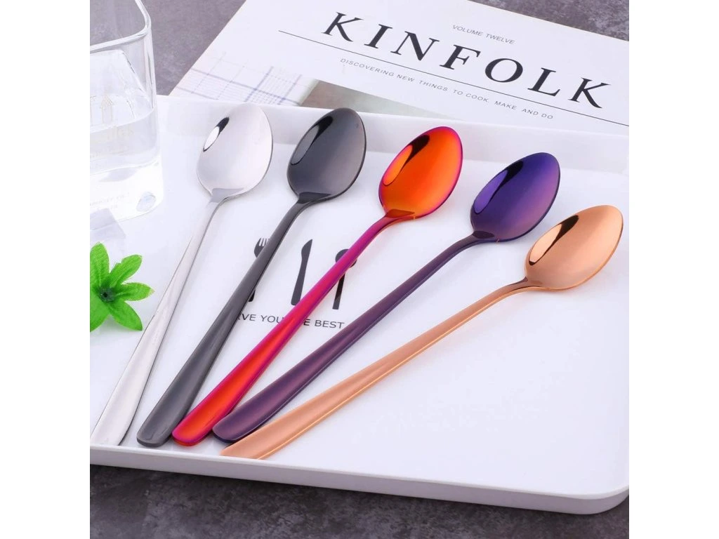 Dlouhé kávové lžičky 20 cm, 8 barev, nerez 18/10 Nové