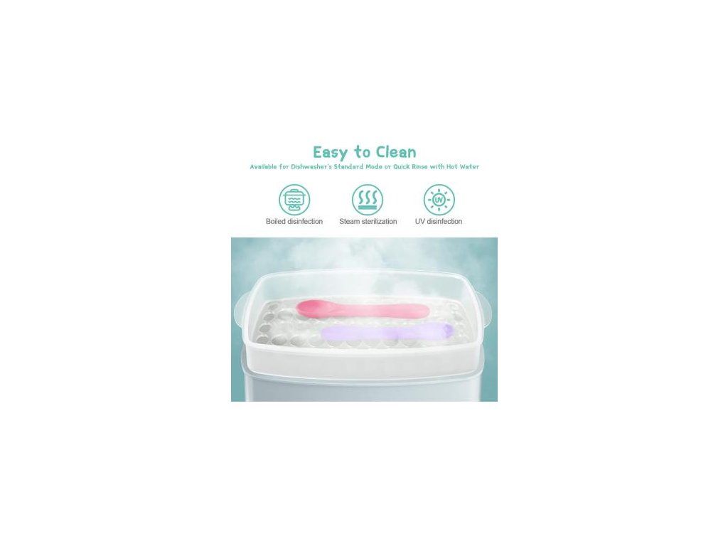 Dětská lžička je vyrobena z vysoce kvalitního měkkého silikonu pro potraviny, který lze mýt v ruce a mýt v myčce nádobí. Neobsahuje BPA, PVC, ftaláty olovnaté ani žádné toxické látky, je ekologická a bezpečná pro děti.