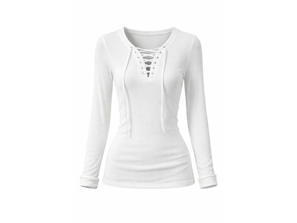 Slušivé tričko Brave Soul je kolem pasu zůženého střihu s výstřihem do V s tkaničkovým zdobením. Má čistou bílou barvu, minimalistický přesto originální kousek do vašeho šatníku.