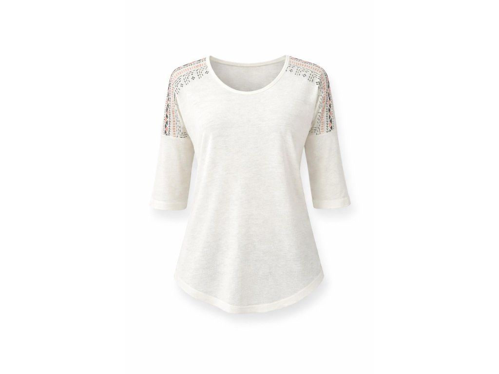 Dámské vyšívané tričko s 3/4 rukávy Roxy, krémově bílé Nové