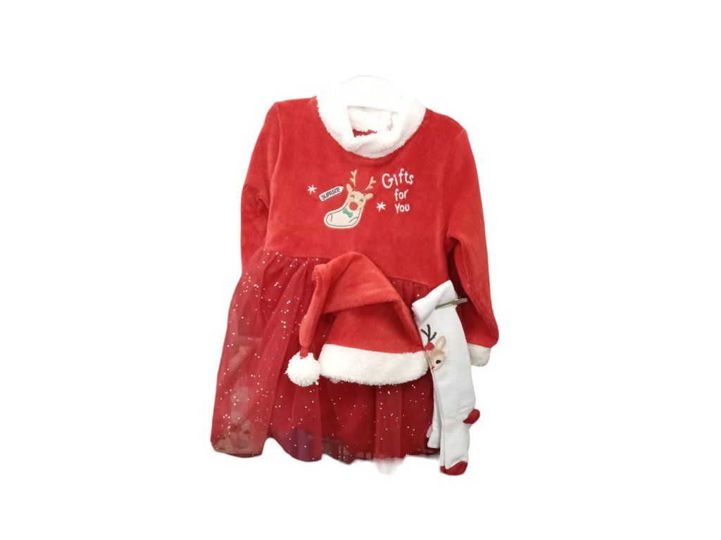 Dívčí Dětský kostým vánoční se sukýnkou a punčochy + Čepice Rozbaleno