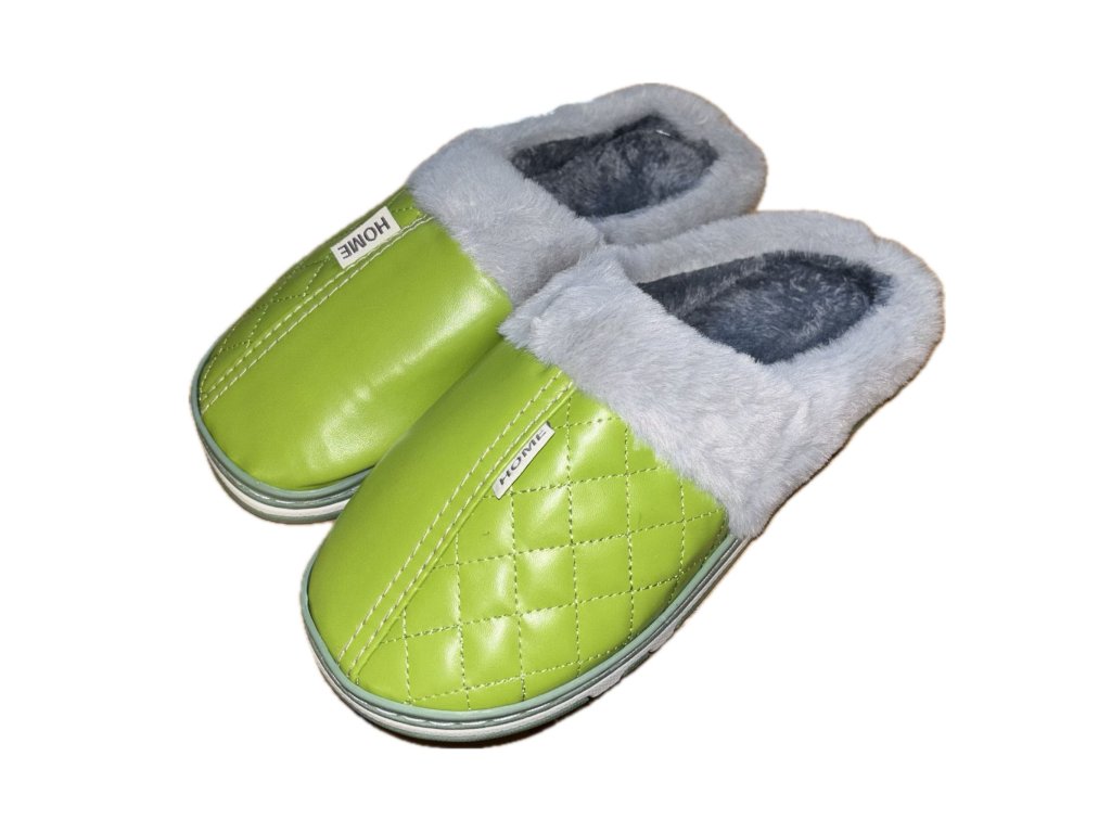 Domácí pantofle s plyšovou podšívkou, světle zelené Rozbaleno