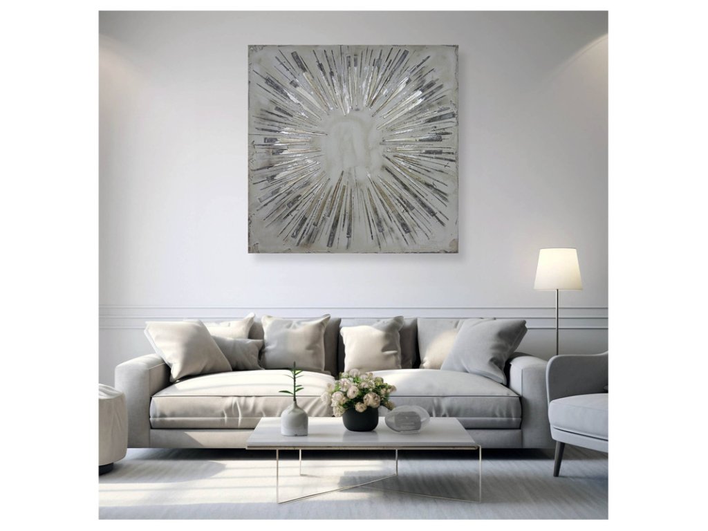 Tento ručně malovaný obraz na pevném rámu zaujme nejen svou originalitou, ale také precizním zpracováním. Abstraktní motiv v šedých tónech, kombinovaný s kontrastní zlatou a stříbrnou, vytváří harmonický a elegantní vizuální dojem. Malba je aplikována na malířské plátno, které je pečlivě napnuté na masivním dřevěném rámu. Tento základ nejen že zaručuje dlouhou životnost obrazu, ale také zajišťuje jeho stabilitu a odolnost po mnoho let.
