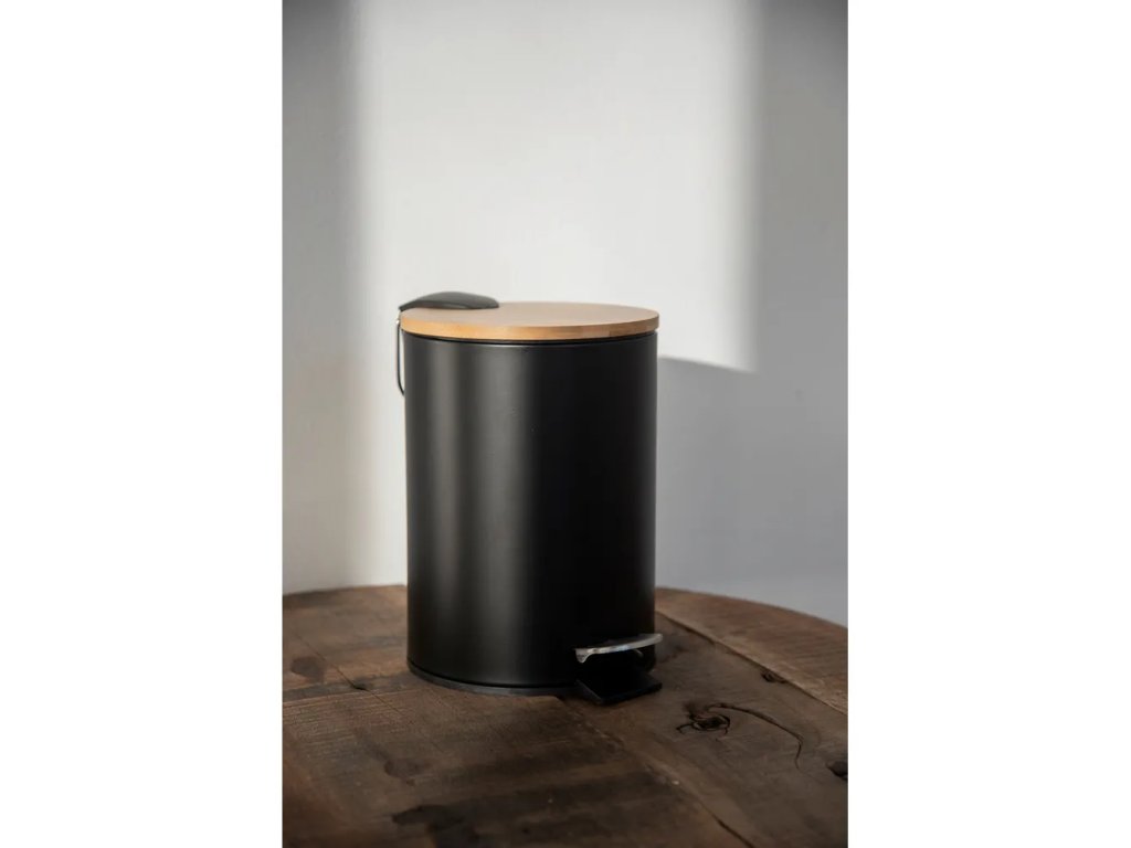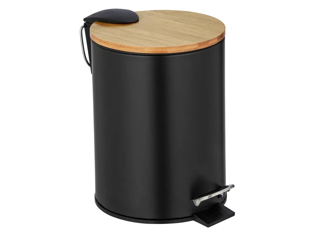 Černý odpadkový koš s bambusovým víkem Wenko Tortona, 3 l Rozbale(v)no, koš má na sobě malé důlky