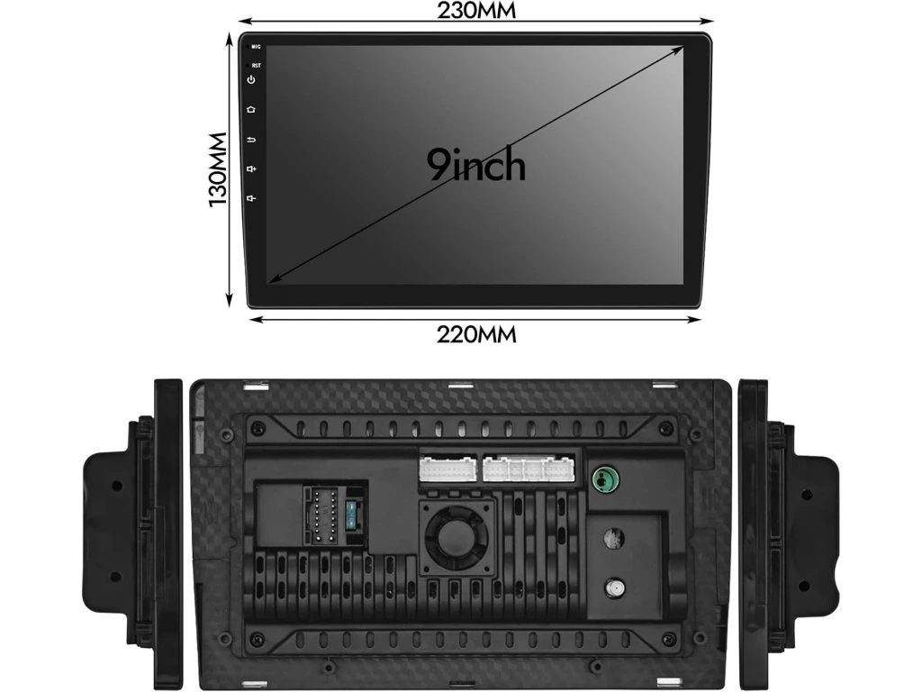 - Displej: 9" IPS kapacitní dotykový panel s 2.5D tvrzeným sklem a rozlišením 1024×600 pro ostrý obraz a citlivé ovládání.