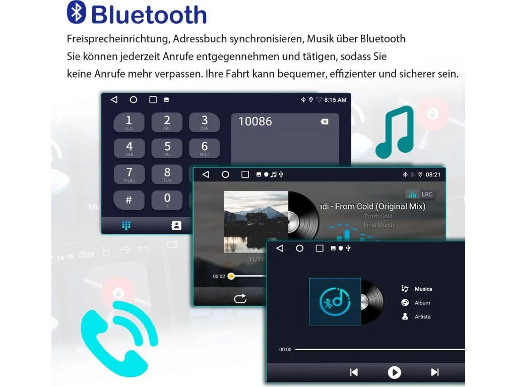 Podporuje navigaci, hands-free volání přes Bluetooth, streamování hudby a ovládání na volantu (v závislosti na vozidle). Rychlý systém s interní pamětí 32 GB, připojením Wi-Fi a možností rozšíření o kameru, DAB+ a GPS. Design specifický pro vozidlo pro čistou integraci do středové konzoly.