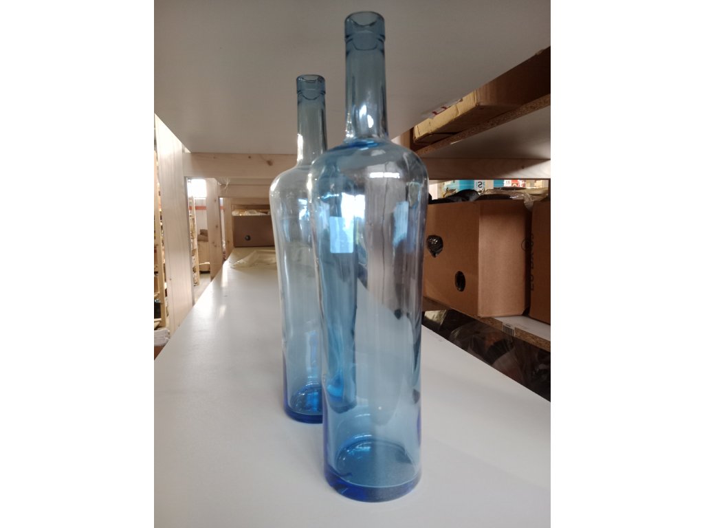 Rozměry: Výška 40 cm, hmotnost 1 kg. Materiál: Sklo. Barva: Světle modrá.