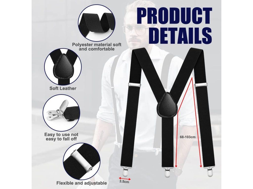 Pánské šle Y‑tvar 3,5 cm s kovovými sponami – černé Nové