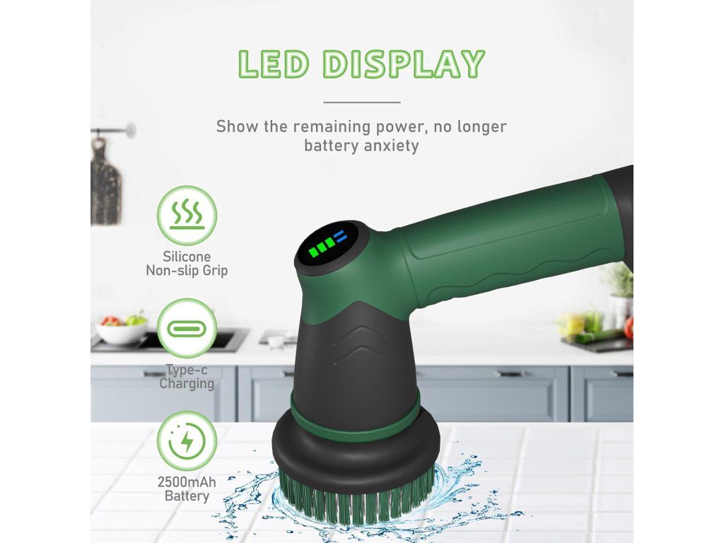Elektrický rotační čistič DAESUNG ušetří čas i námahu při úklidu koupelny, vany, sprchy, kuchyně i podlahy. Silný motor a snadné ovládání jedním tlačítkem zaručují rychlé a efektivní odstranění zaschlých skvrn a usazenin.