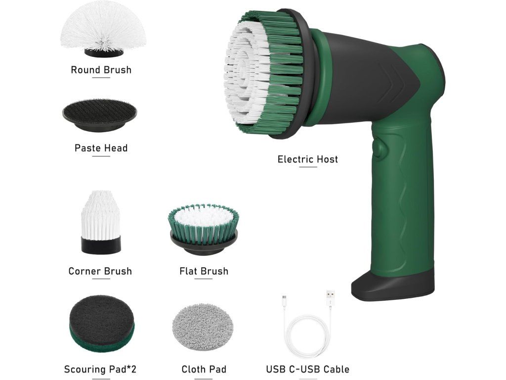 - 6 vyměnitelných hlavic: sadu tvoří různé kartáče pro čištění spár, vany, dřezu, sporáku, grilu i větších ploch.