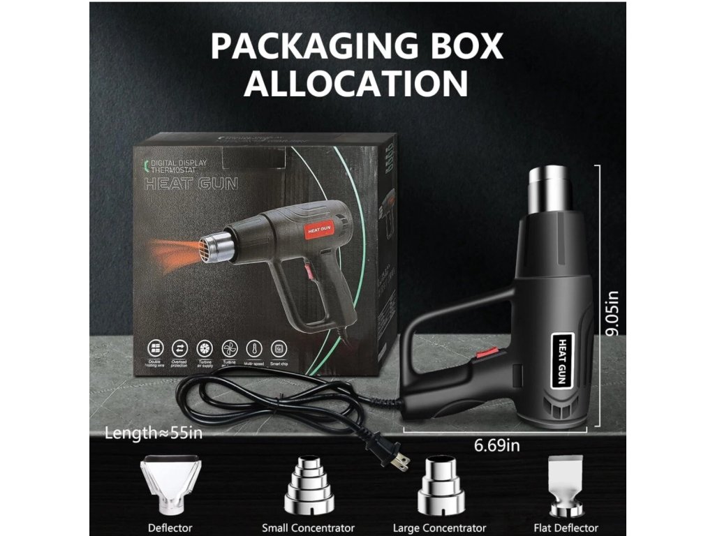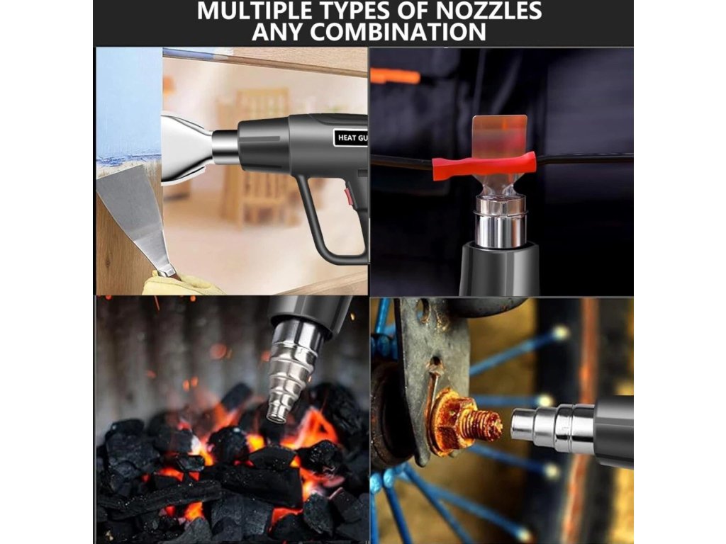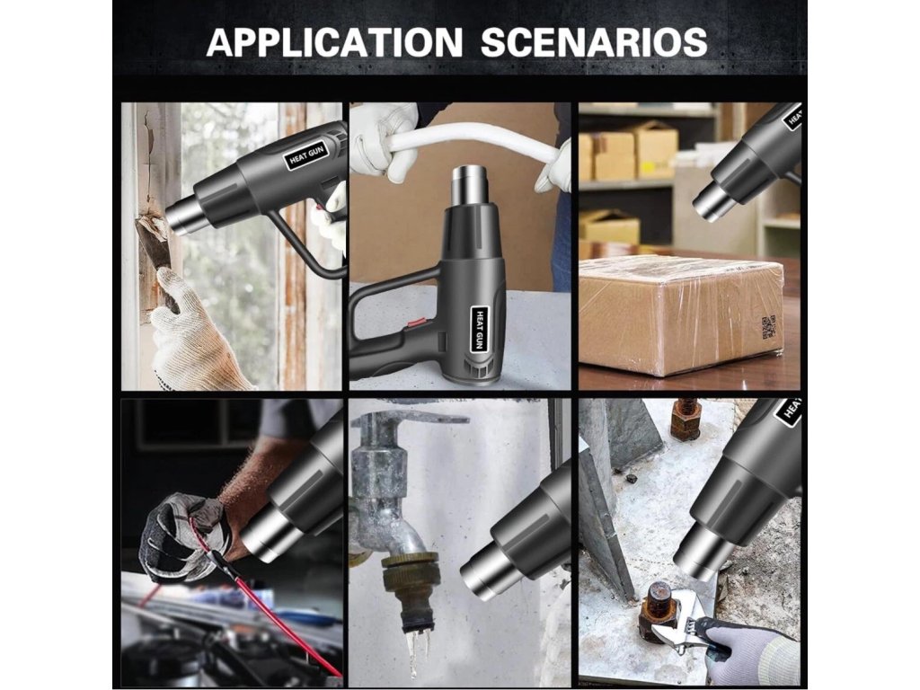 【Široká škála použití】:Ruční horkovzdušná pistole pro smršťování smršťovacích bužírek, rozmrazování trubek, smršťování fólií, ohřev PVC, odstraňování tapet, opravy mobilních telefonů, odstraňování barev nebo dlaždic, povolování rezavých šroubů a další aplikace v oblasti ohřevu nebo rozmrazování