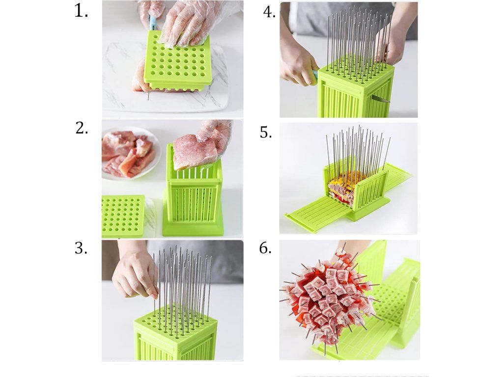 Praktická krabička ZHDBD revolucionizuje přípravu kebabů a špízů. Umožní vám připravit až 49 špízů během pouhých 5 minut, což výrazně ušetří čas při grilování a ochrání vaše prsty před poraněním při napichování.