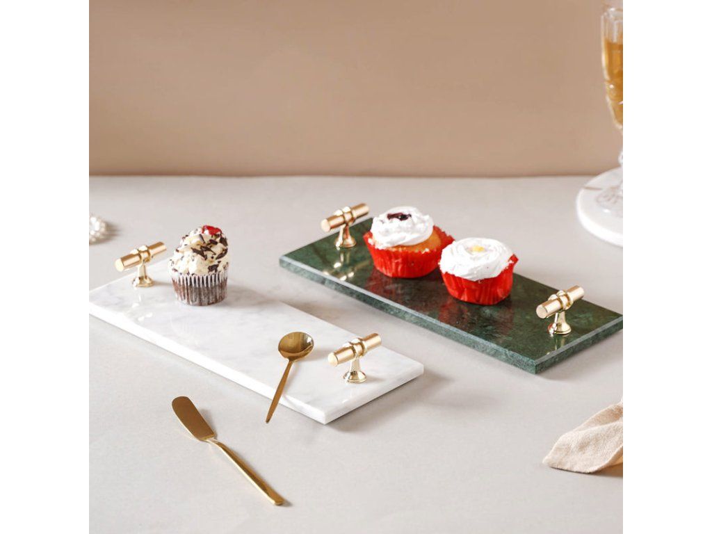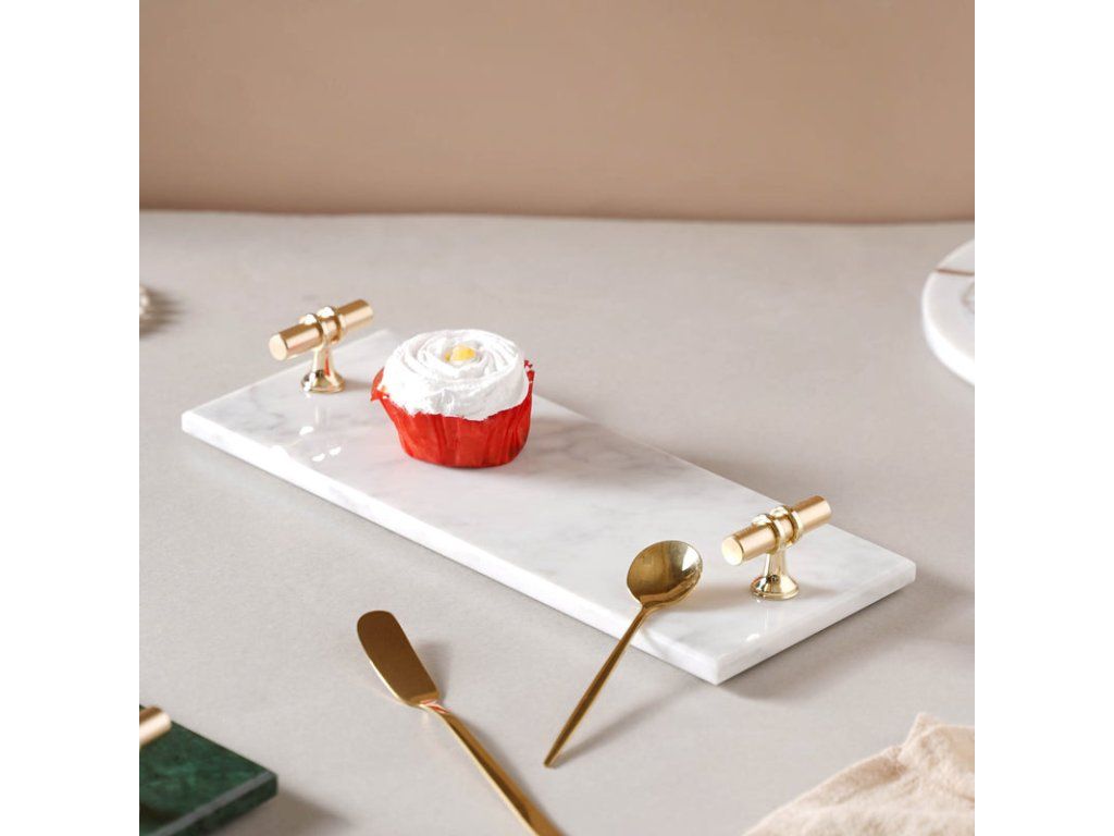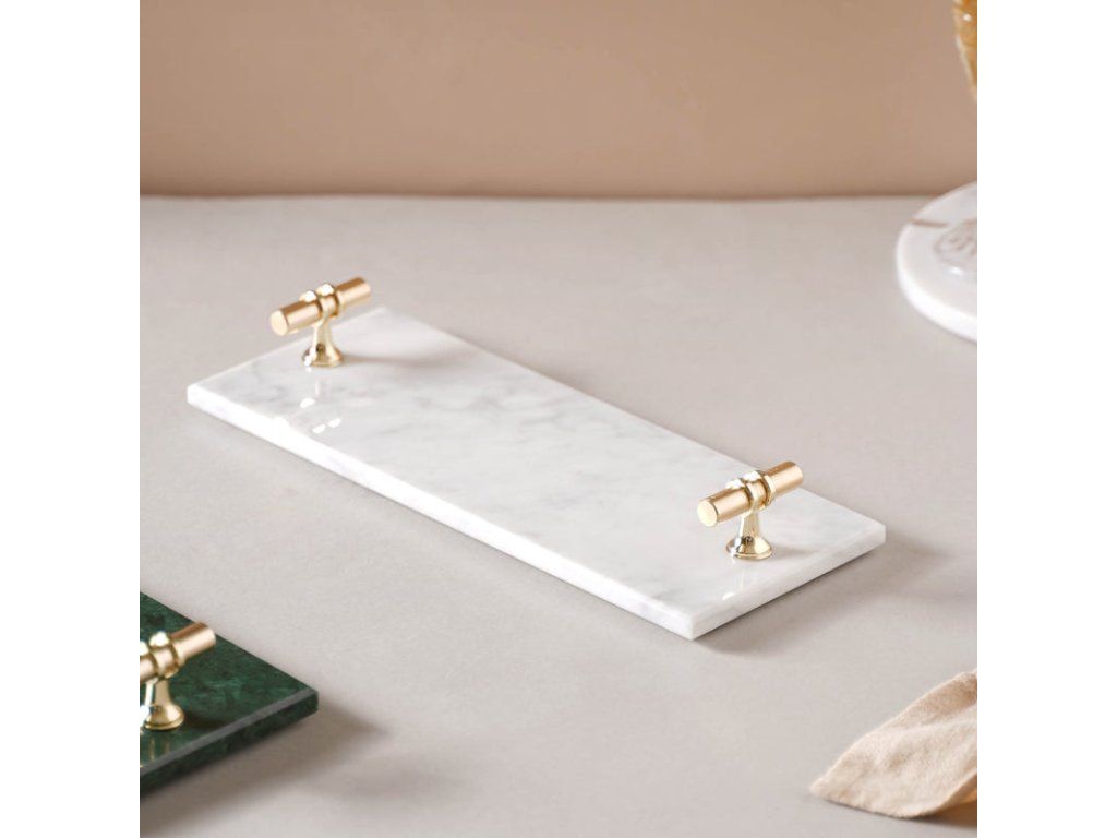 Mramorový podnos s kovovou rukojetí bílý Nové