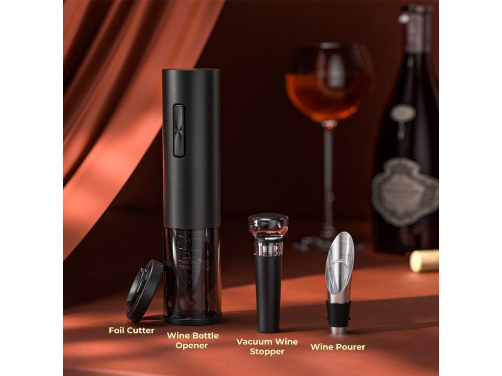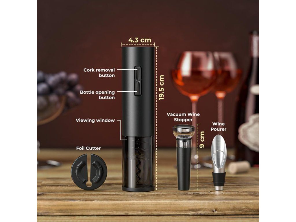 Už žádné boje s ručními vývrtkami ani rozlámané zátky. Tento nabíjecí elektrický otevírák na víno vám umožní elegantně a rychle otevřít láhev jediným tlačítkem, přičemž chrání zátku a usnadňuje servírování i provzdušnění vína.