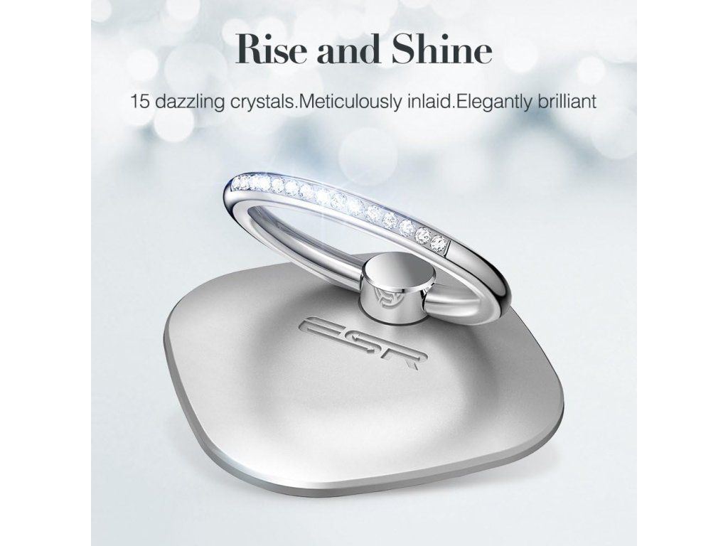 Univerzální prstový držák ESR je elegantní a praktické řešení pro bezpečné držení vašeho mobilního telefonu nebo tabletu. Díky otočnému hliníkovému kroužku s dekorativním krystalem získáte nejen lepší ergonomii při používání zařízení, ale také stylový doplněk.