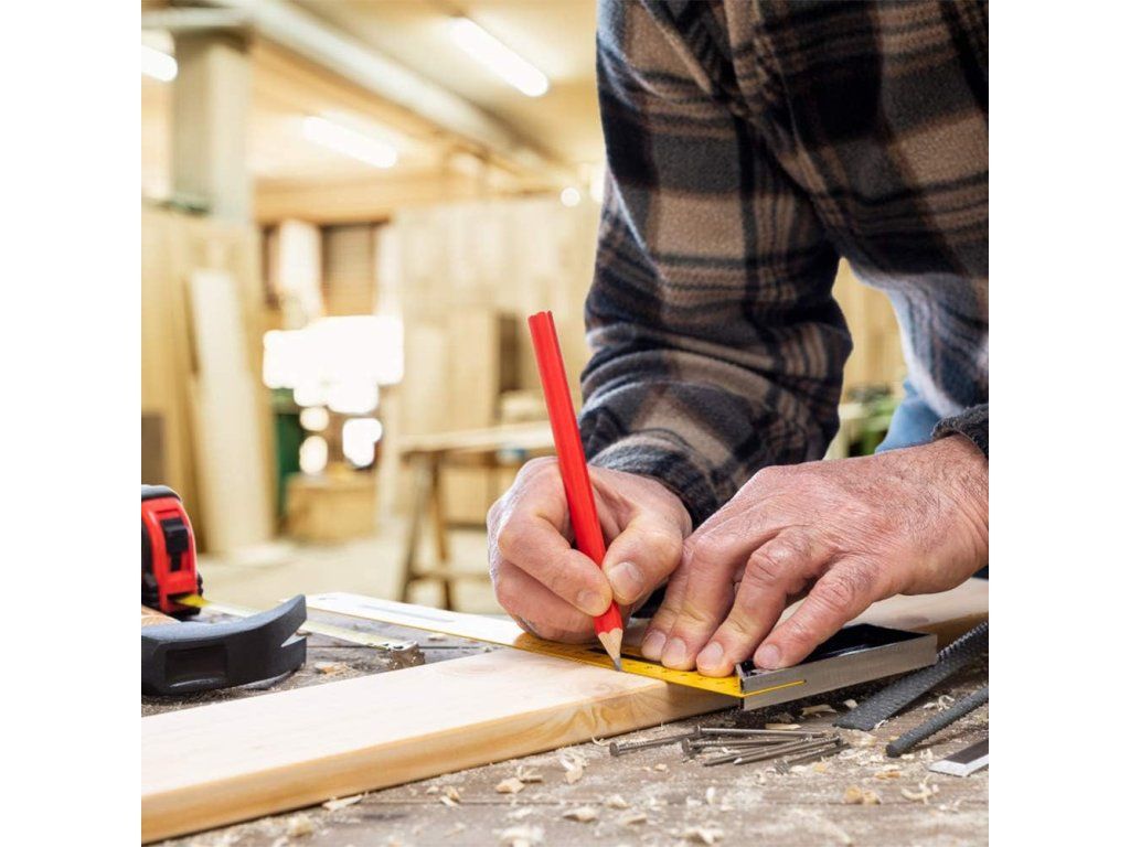 Praktická sada profesionálních tesařských tužek určených pro řemeslníky i domácí kutily: pevná tvrdá tuha (H) píše ostře a snadno čitelně na dřevo i jiné stavební materiály, přičemž není náchylná k lámání.