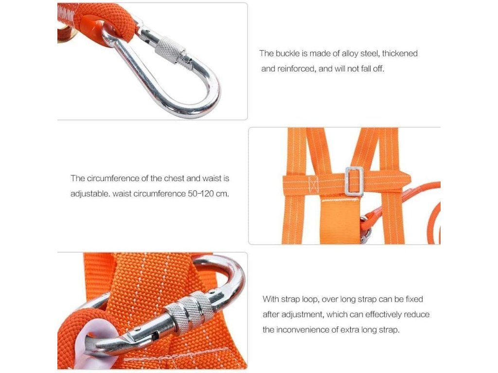 Nárazová síla: 100 kg, nosnost bezpečnostního lana: 2200 kg, tažná síla bezpečnostního háku: 1600 kg, zvyšuje bezpečnost používání bezpečnostního pásu.