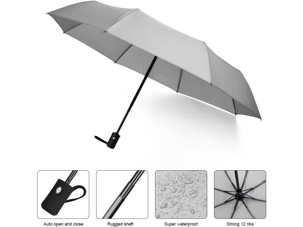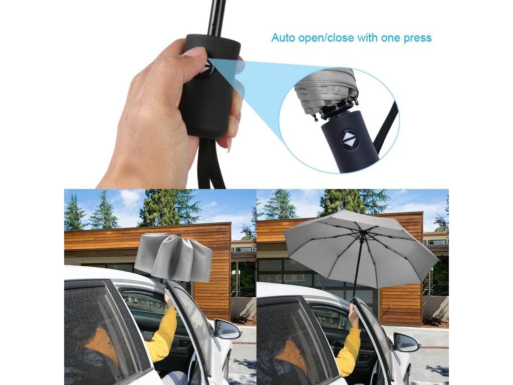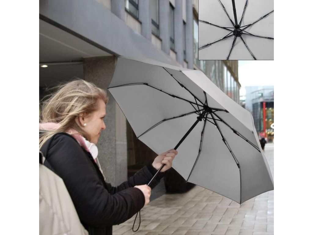 Automatický kapesní deštník 8 žeber, větruodolný, šedý Nové