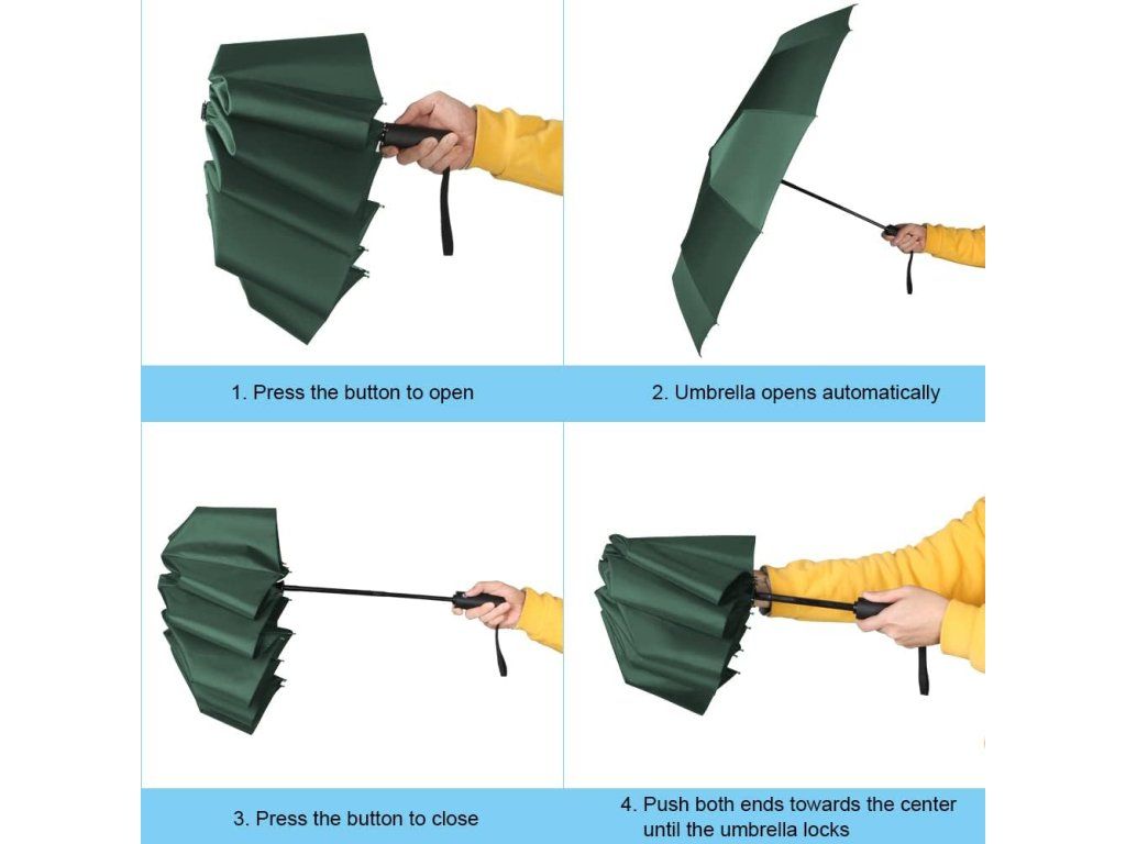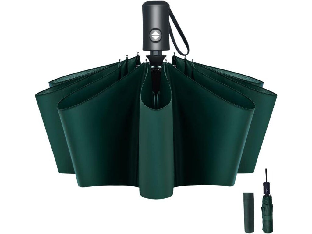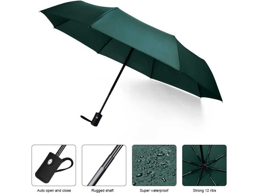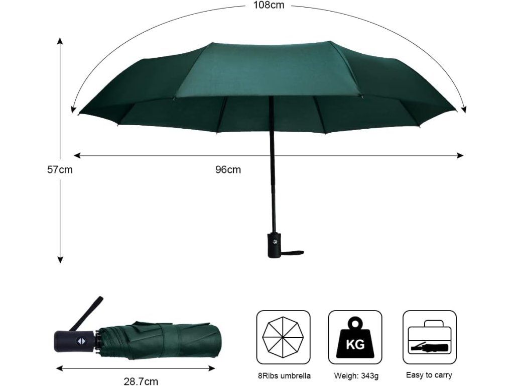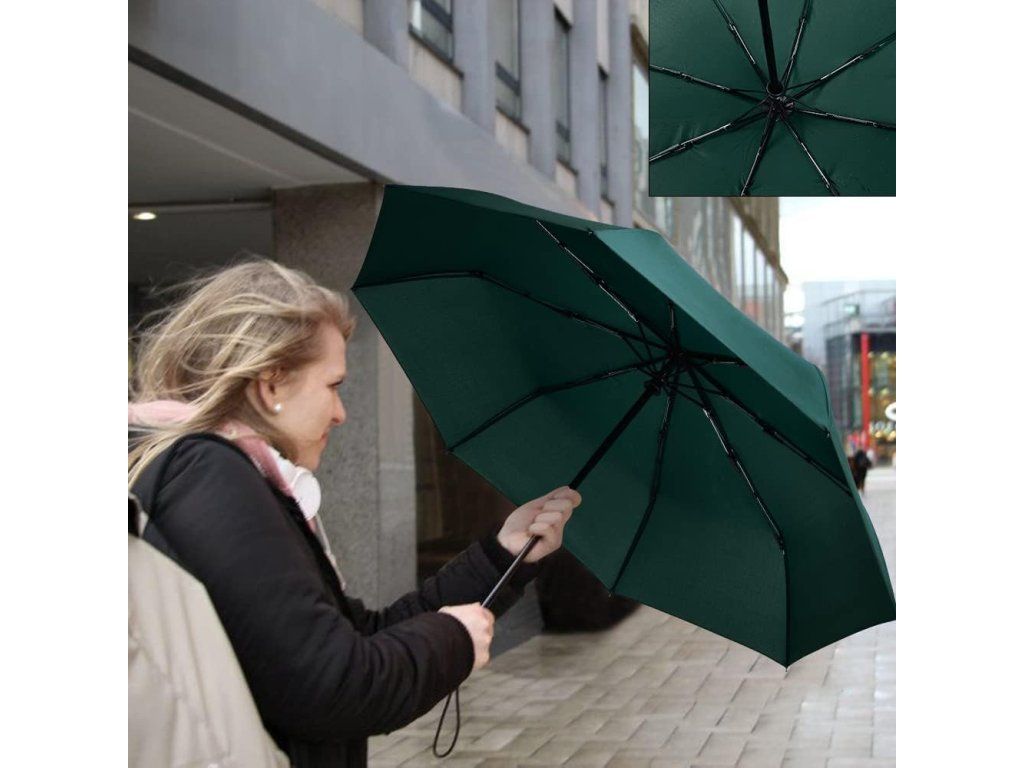 Kompaktní automatický skládací deštník, 8 žeber – tmavě zelený Nové