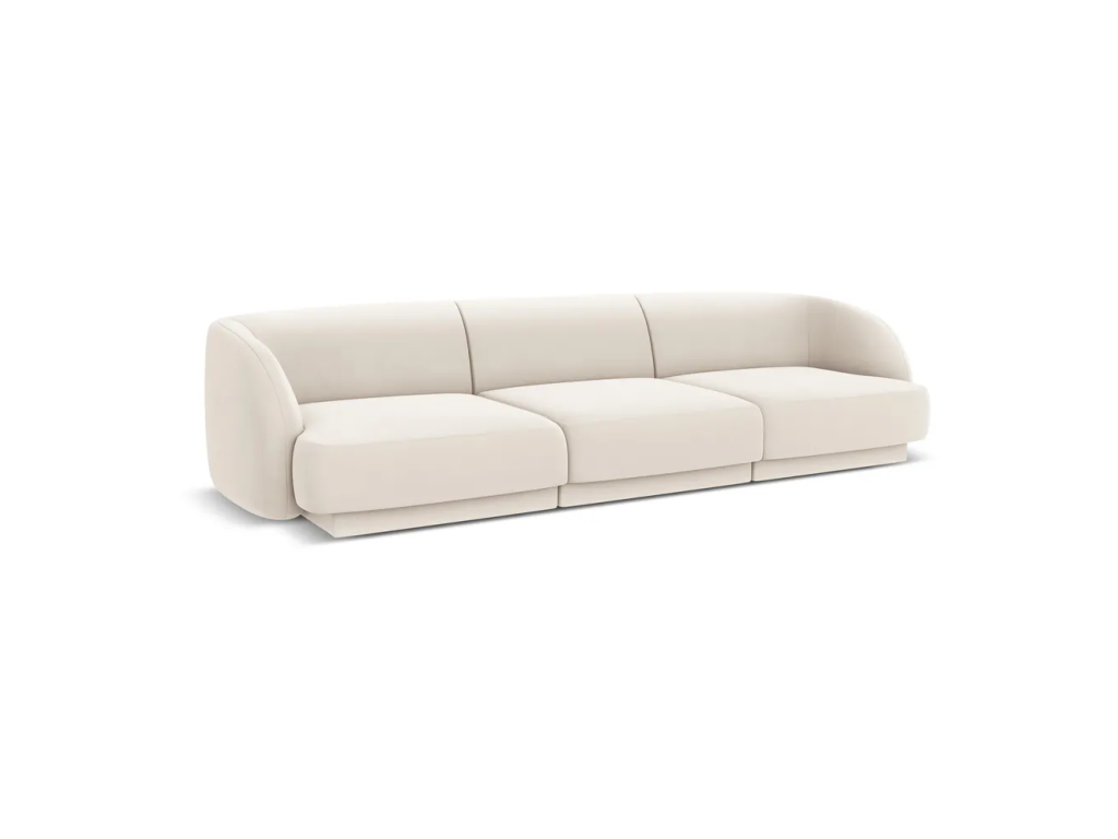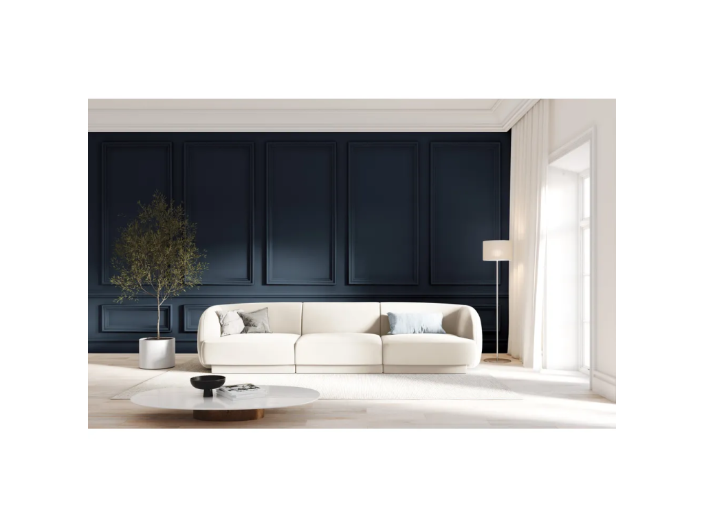 Dokonale zaoblené tvary, které jsou v souladu s nejnovějšími trendy interiérového designu. Také jsou pohovky Miley od značky Micadoni Home. Kromě své okouzlující minimalistické podoby se navíc vyznačují mimořádným komfortem a dostatečnou oporou v jakékoliv poloze - ať už vsedě či vleže.Barva Bílá Velikost pohovky Čtyřmístná Roh a tvar Rovná Šířka 265 cm Výška 70 cm Hloubka 90 cm Váha 79 kg Nosnost 350 kg Výška nohou 2 cm Výška sedáku 40 cm Hloubka sedáku 60 cm Šířka sedáku 231 cm Výška zadní opěrky 30 cm Výška područky 70 cm Šířka područky 17 cm Materiál čalounění Samet Martindale 50000 martindale Specifikace materiálu 100% polyester Materiál konstrukce Masiv borovice, dřevotříska, překližka Materiál nohou Plast Barva nohou Černá Výplň Molitan (PUR), pružiny Tvrdost sedáku Tvrdý Péče Čistit suchým hadřikem, nepouživat agresivní a abrazivní čističe Snímatelný potah Ne Sedací polštáře Na pevno Zádové polštáře Na pevno