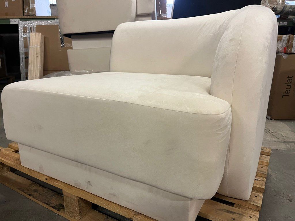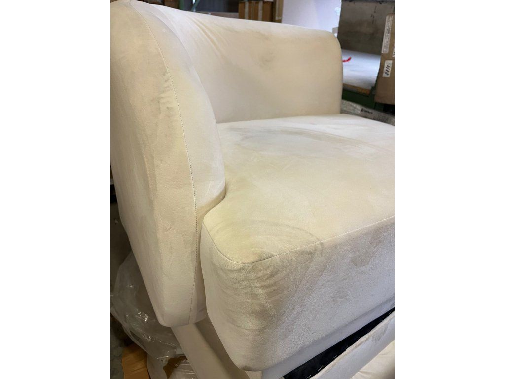 Čtyřmístná pohovka Miley bílá Poškozené, poškrábaná látka na sedací části a područce viz foto, nutno vyčistit!
