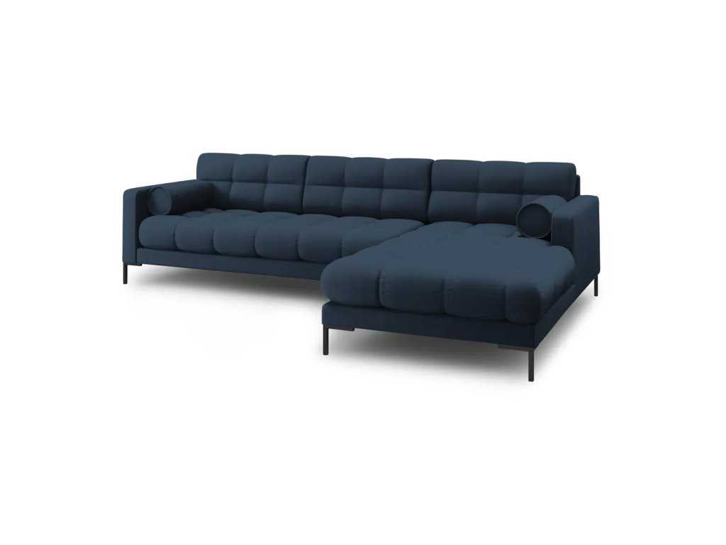 Rohová pohovka Bali tmavě modrá Rozbale(v)no, zašpiněné - nutno vyčistit! Na sedací části jsou žmolky. Protržená opěrna ze zadní strany pohovky viz foto
