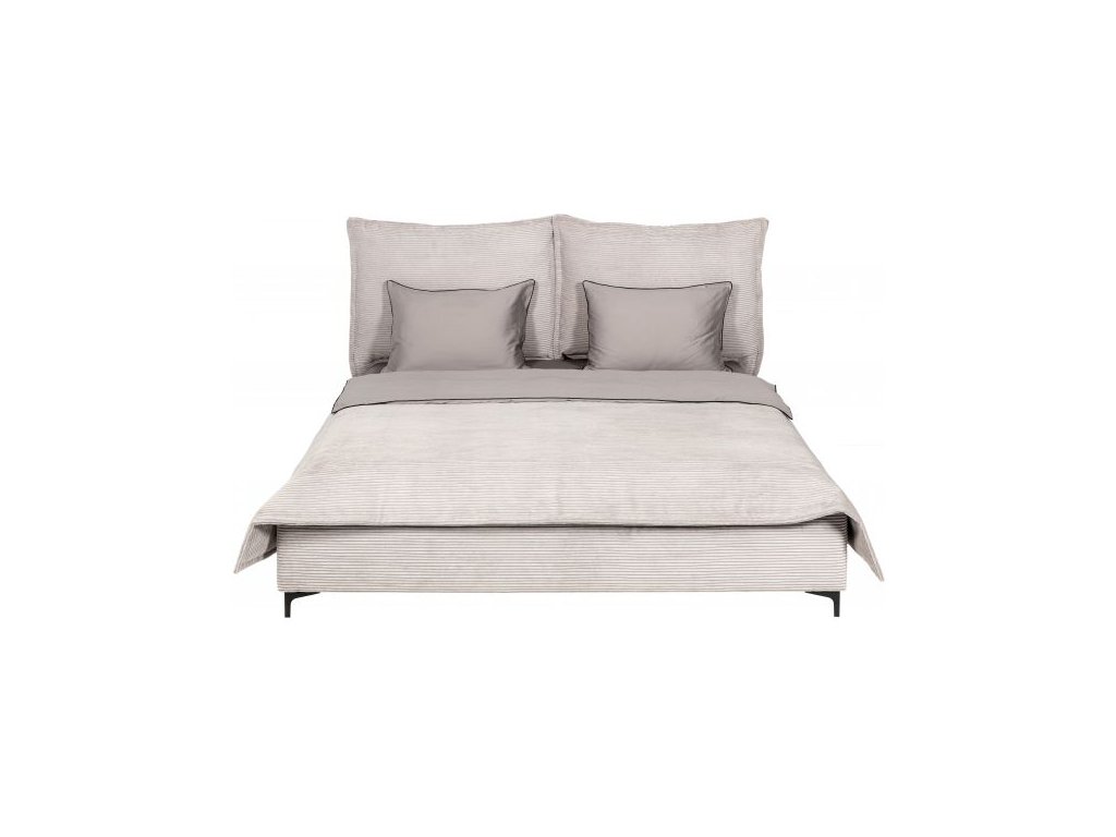Rám postele je vyroben z masivního dřeva a materiálů na bázi dřeva a výplň je z polyuretanové pěny o hustotě 25 kg/m3 a dalšího vatování. Nohy postele jsou vyrobeny z černého kovu a mají výšku 10 cm. Rozměry postele 160x200cm: Výška čela postele : 122cm Šířka čela postele : 181cm Celková délka postele : 227cm Výška nohou : 43,5cm Šířka nohou: 181cm