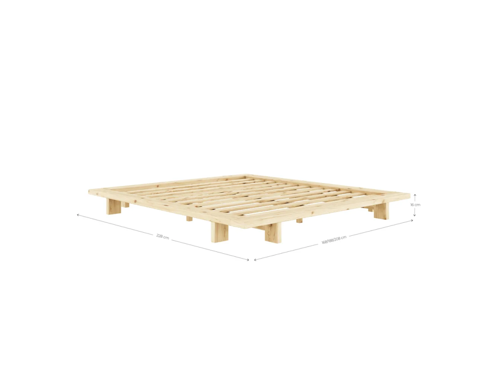 Inspirována japonskou jednoduchostí, borovicovou dvoulůžkovou postel Japan od značky Karup Design charakterizují čisté linie a prosté provedení, které však rozhodně není ochuzeno o funkční stránku.Barva Černá Příslušenství Bez úložného prostoru, bez čela, na nožičkách Matrace je součástí Ne Rošt je součástí Ano Typ Japonské, nízké Typ roštu Laťkové Délka 228 cm Šířka 208 cm Výška 20 cm Rozměr 180x200cm Váha 44.5 kg Nosnost 300 kg Výška nohou 16 cm Výška rámu postele 20 cm Výška uchycení roštu 16cm Materiál Dřevo masiv Materiál konstrukce Masiv borovice Dekor Borovice Povrchová úprava Lazura Materiál nohou Masiv borovice Barva nohou Černá Materiál roštu Dřevo masiv Péče Čistit vlhkým hadříkem nebo houbičkou, nepouživat agresivní a abrazivní čističe Středový nosník Ano Počet nohou 8 ks
