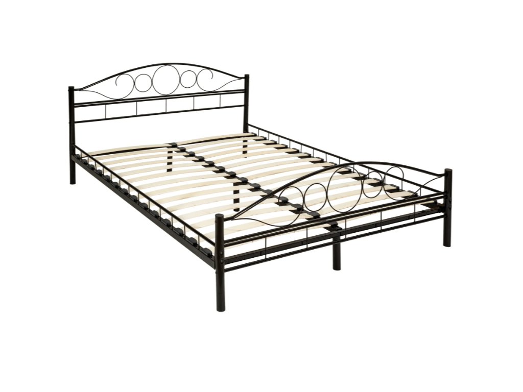 Kovová postel dvoulůžková Romance včetně lamelových roštů černá/černá 200 x 140 cm Rozbaleno