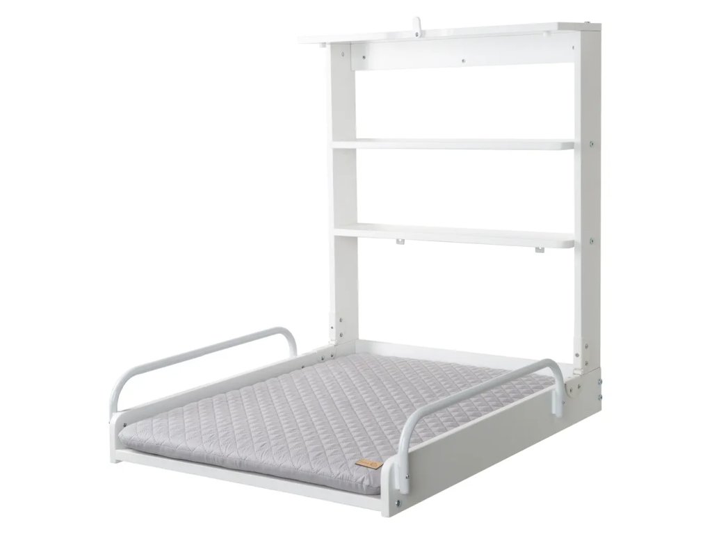 Závěsný přebalovací pult od značky Roba přijde vhod zejména do malých interiérů. Pokud ho zrovna nepotřebujete, může zůstat uzavřený, a tudíž nezabere prakticky žádné místo. A jakmile přijde čas, stačí jen povolit pojistku a pult umístit do horizontální polohy. Jeho součástí je přebalovací podložka (75 x 59,5 cm) vyrobená z polyvinylchloridu, ve které však nenajdete ani stopy po ftalátech. Její povrch je speciálně upravený tak, aby odpuzoval vodu a nečistoty.