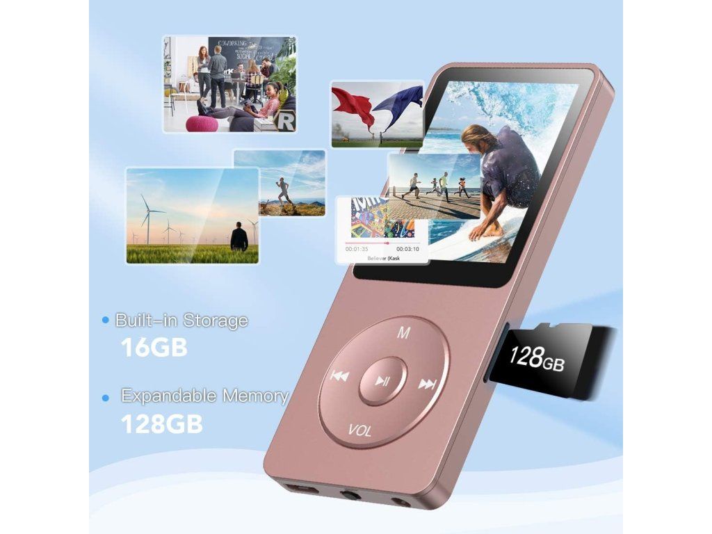 Kapesní MP3 přehrávač 8 GB, až 70 h přehrávání, růžově zlatý Nové