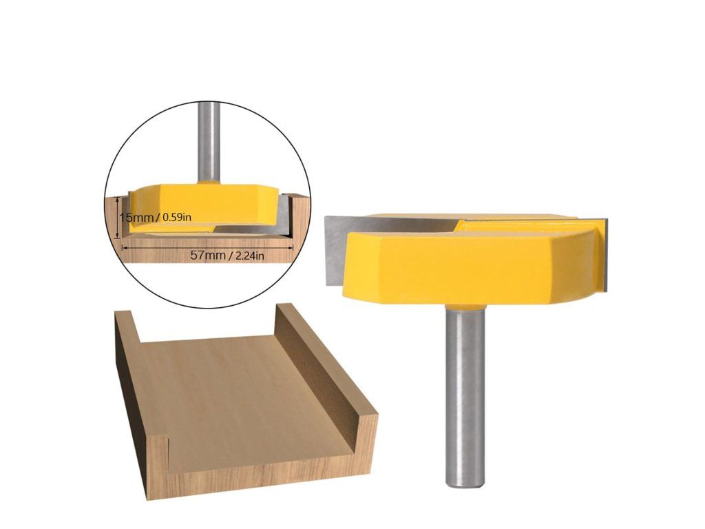 Obsah balení: 1× stopková fréza, plastové pouzdro. Technické údaje: materiál hlavy – slitina YG6; materiál těla – 45# uhlíková ocel; rozměry hlavy – 57 × 40 × 15 mm; průměr stopky – 8 mm; délka stopky – 38 mm; hmotnost – cca 180 g. Vhodné pro přesné dřevoobrábění a úpravy hran.