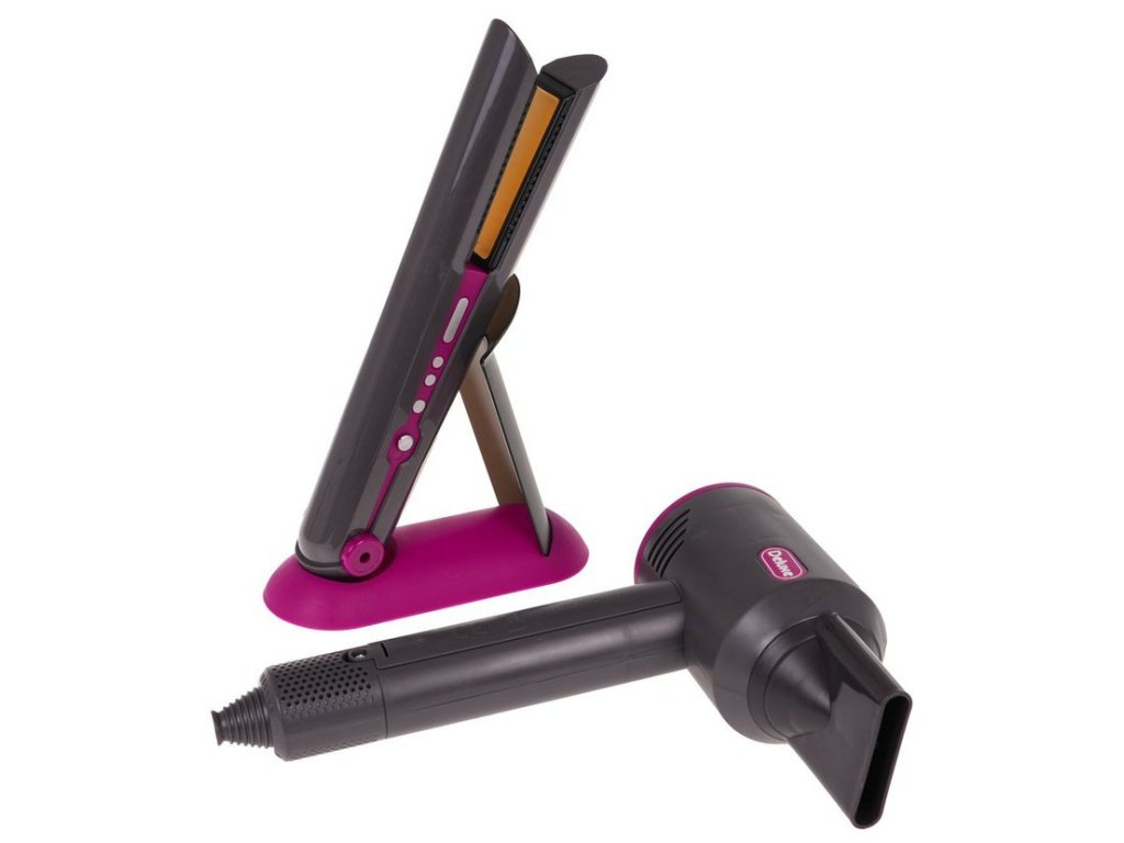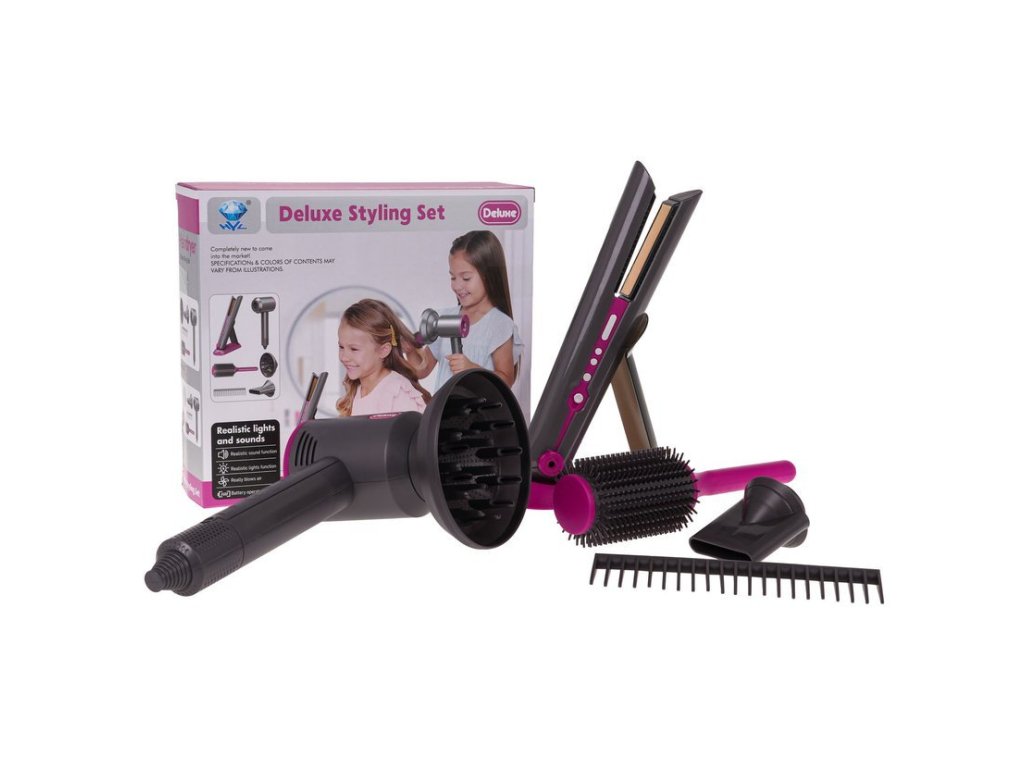 Set obsahuje fén s vyměnitelnými nástavci (difuzér a koncentrátor), žehličku na vlasy, hřeben, kartáč a stojánek na žehličku. Fén vydává zvuky jako při sušení a má jemný proud vzduchu. Žehlička svítí a vydává zvuky při "žehlení". Set je detailně propracovaný a vhodný pro rozvoj dětské fantazie.