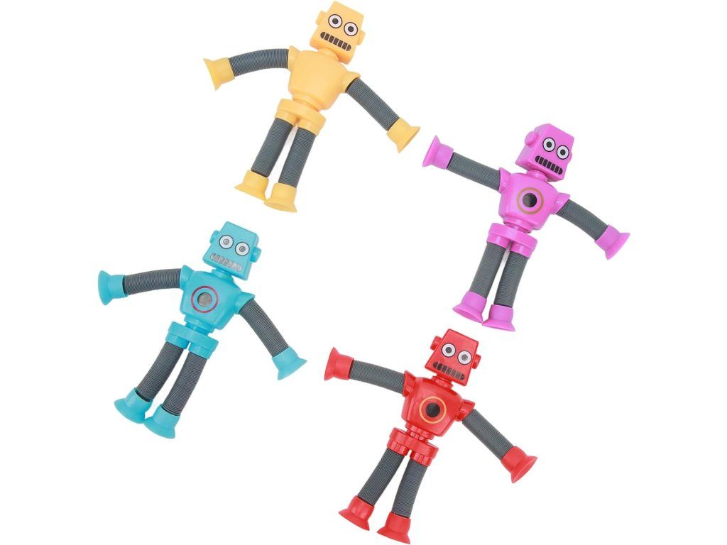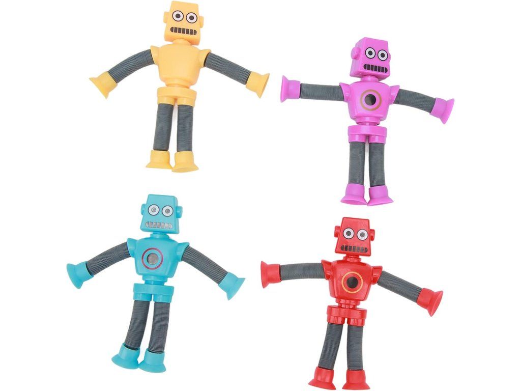 Obsah balení: 4× roboti s teleskopickými přísavkami. Technické údaje: celková hmotnost balení cca 139 g; materiál: plast; doporučený věk: 12–72 měsíců; počet kusů: 4; provoz: manuální; bez potřeby baterií; model: AMONIDA Robot Toys (AMONIDAks9gbyuiex).
