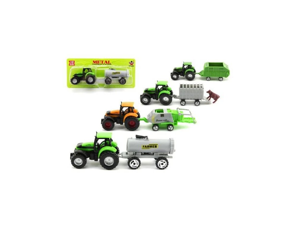 Traktor s přívěsem plast 16 cm na kartě Nové, náhodný výběr barvy
