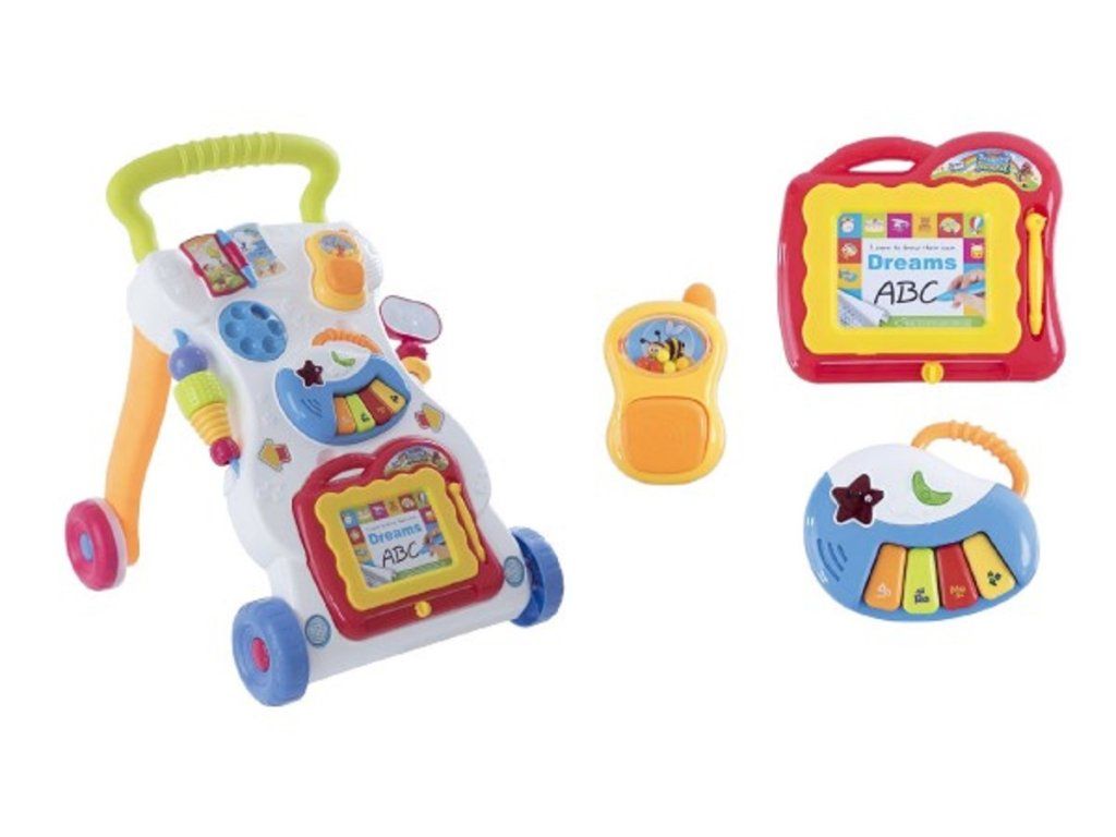 Nejdříve si děti mohou hrát s odnímatelnými panely a poznávat tak různé zvuky a rozvíjet si tak jemnou motoriku. Jakmile povyrostou, chodítko jim dává pocit bezpečí při prvních krůčcích.