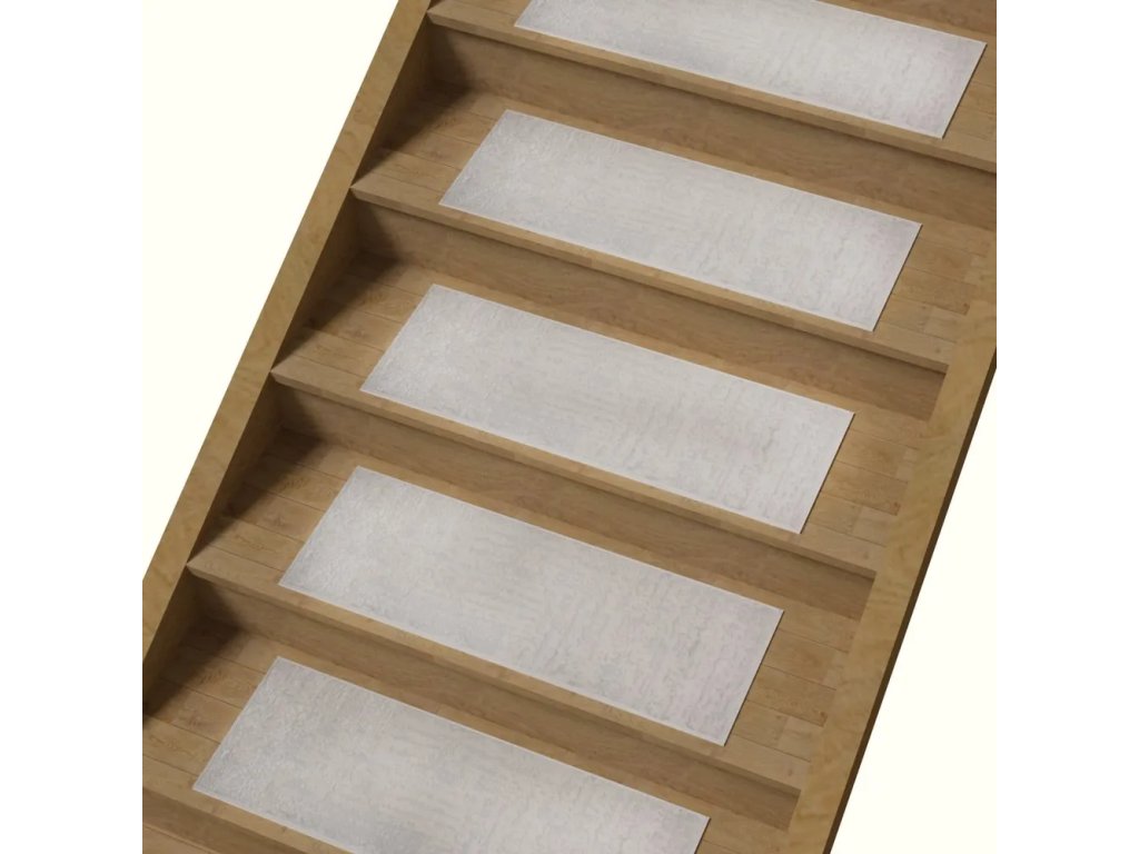 Nášlapy na schody v sadě Milano Beyaz16 ks, bavlněné, samolepící, krémové, 25x65 cm Rozbalev(n)o