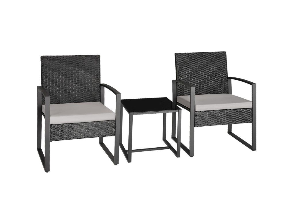 Ocelové rámy, jemná plastová síťovina a pohodlné polštáře jsou vizuálně dokonale sladěny a přesvědčí vysokou odolností a nízkými nároky na čištění. Na robustní desce z bezpečnostního skla ve stylové černé barvě máte vždy na dosah lahodnou kávu, chutné občerstvení a vzrušující materiály ke čtení. Výškově nastavitelné nožičky vždy zajistí přesné vyvážení i na nerovných podlahách – dopřejte si letní chvíle na terase, balkónu nebo v přírodě s útulnou zahradní sadou Granada od tectake. Celkové rozměry (ŠxHxV): cca 58 cm x 55,5 cm x 78 cm Sedák (ŠxHxV): cca 50,5 x 46 x 5 cm Výška sedáku (s polštářem): cca 41 cm Opěrka zad (ŠxV): cca 50,5 x 46 cm Délka područky: cca 50 cm Rám (ŠxH): cca 3,5 x 1,5 cm Nastavitelnost plastových nožiček: cca 0,5 cm Nosnost: 120 kg Hmotnost (s polstrováním): cca 5,2 kg Materiál: ocel s práškovým nástřikem, polyetylén, 100% polyester Stůl Celkové rozměry (ŠxHxV): cca 41 x 41 x 39 cm Rám (ŠxH): cca 2,5 x 1,5 cm Nastavitelnost plastových nožiček: cca 1 cm Nosnost: 25 kg Hmotnost (se skleněnou deskou): cca 4 kg Materiál: ocel s práškovým nástřikem, sklo