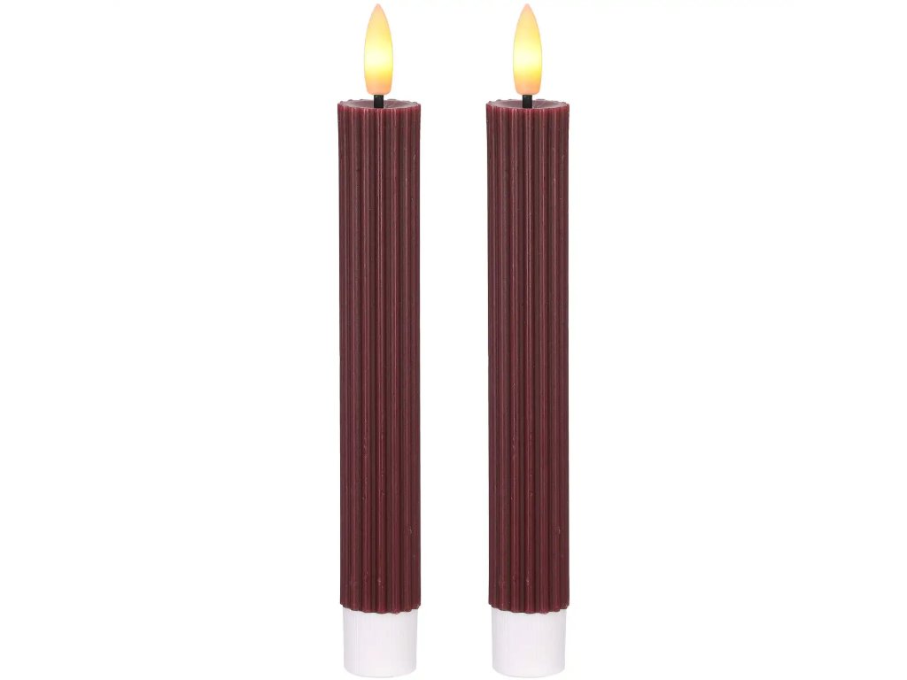 Blokker LED večeře svíčka žebrovaná – 2,2 × 15,5 cm – rubínově červená