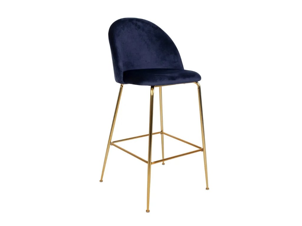 Sada 2 modrých barových židlí se sametovým potahem s nohami mosazové barvy House Nordic Lausanne Rozbaleno