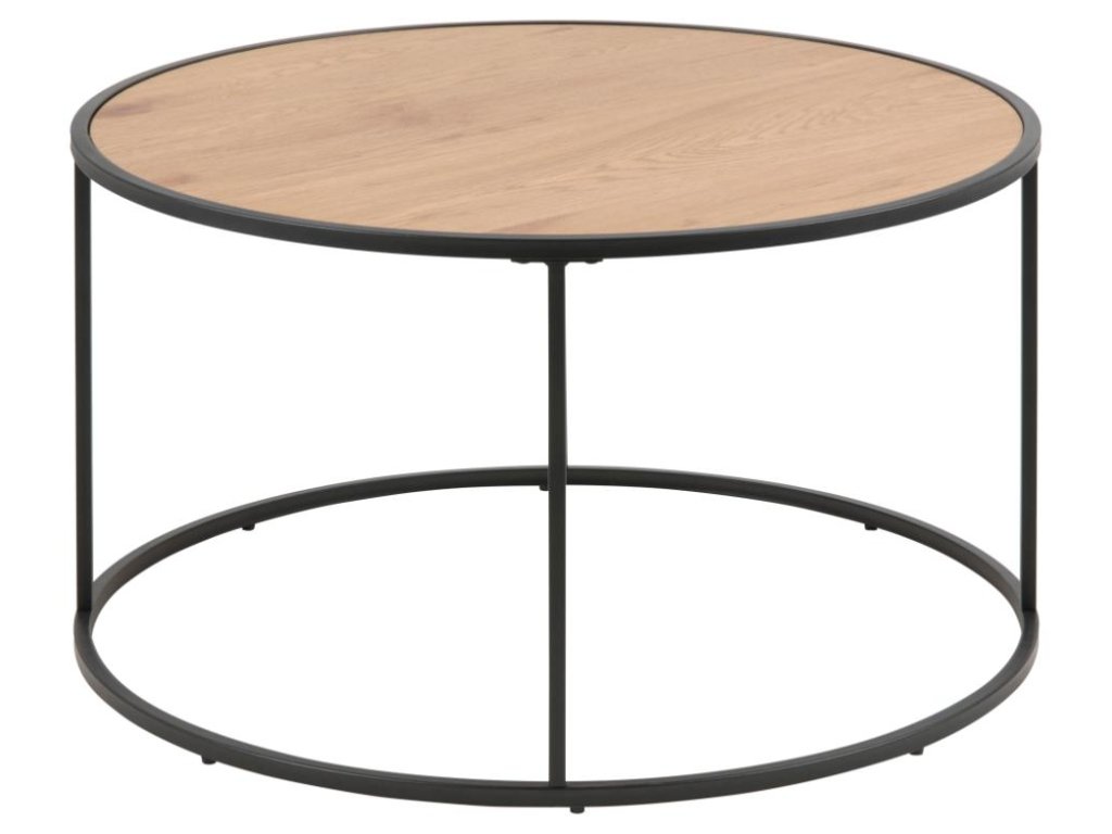Kulatý konferenční stolek Seaford, deska matný divoký dub s hrubým papírem, základna matná černá s hrubým práškovým lakováním oceli, Ø80x45 cm