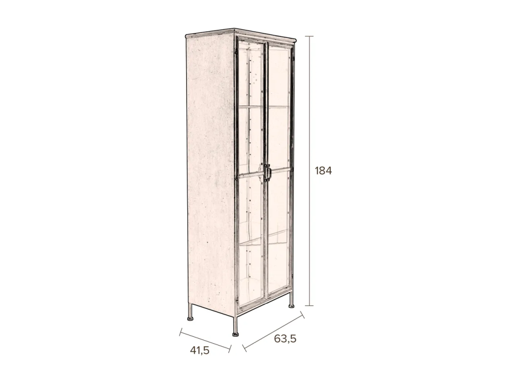 Barva Zlatá Šířka 64 cm Výška 184 cm Hloubka 41.5 cm Váha 40.7 kg Nosnost 40 kg Výška nohou 11 cm Materiál Kov Materiál nohou Kov Materiál zadní části Kov Vlastnosti S dvířky, s poličkami, na nožičkách Péče Čistit suchým hadřikem, nepouživat agresivní a abrazivní čističeDoplňkové parametry