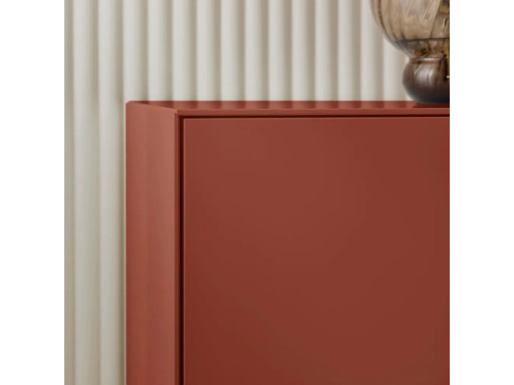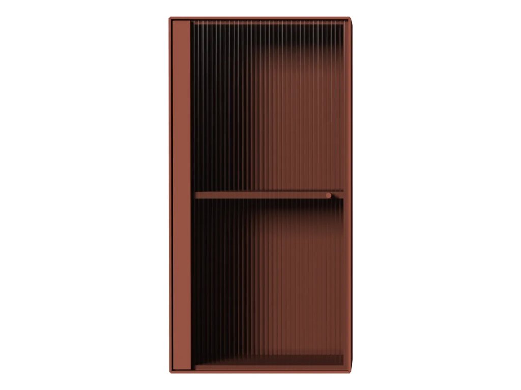 Závěsná vitrína v cihlové barvě má rýhované skleněné dveře s minimalistickými úchytkami. Barva Cihlová Šířka 46.2 cm Výška 90.8 cm Hloubka 32.5 cm Váha 20.13 kg Nosnost 20 kg Materiál MDF Dekor Matný Povrchová úprava Lak Materiál poliček MDF Povrchová úprava poliček Lak Materiál dvířek Sklo Materiál úchytek Kov Materiál zadní části Dřevovláknitá deska Vlastnosti S dvířky, s poličkami, závěsné Péče Čistit vlhkým hadříkem nebo houbičkou, nepouživat agresivní a abrazivní čističe Systém zavírání Push to open (bezúchytkové otevírání)