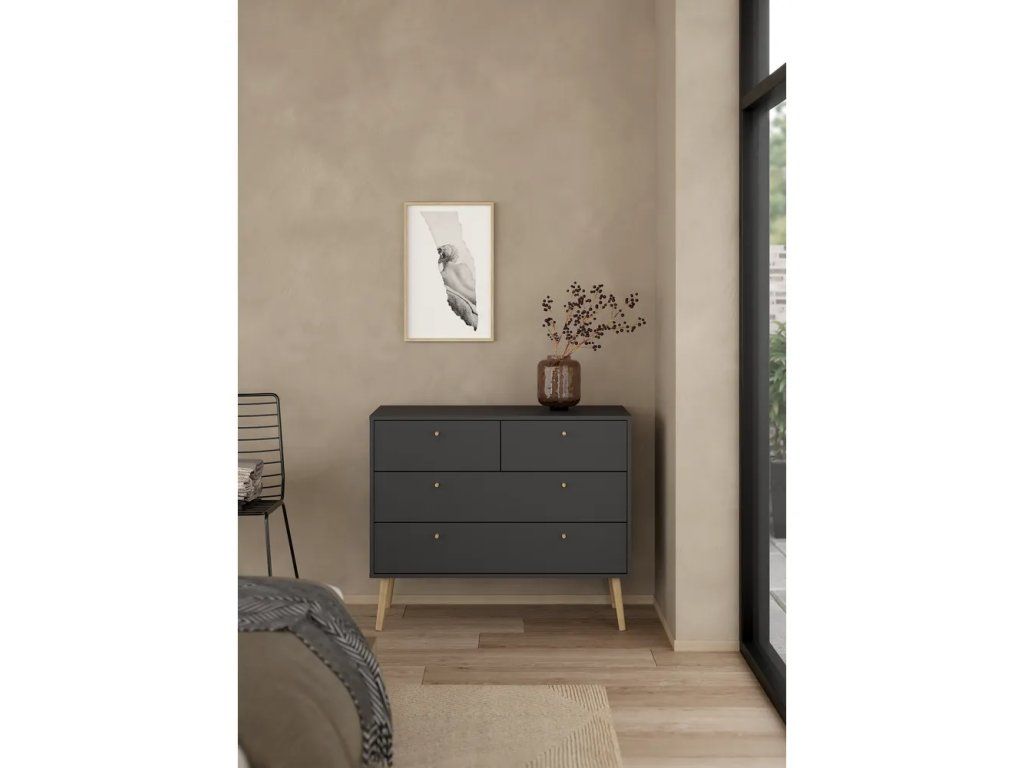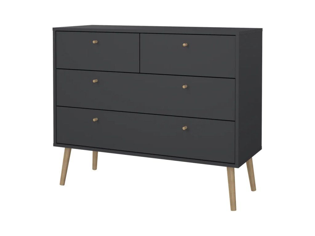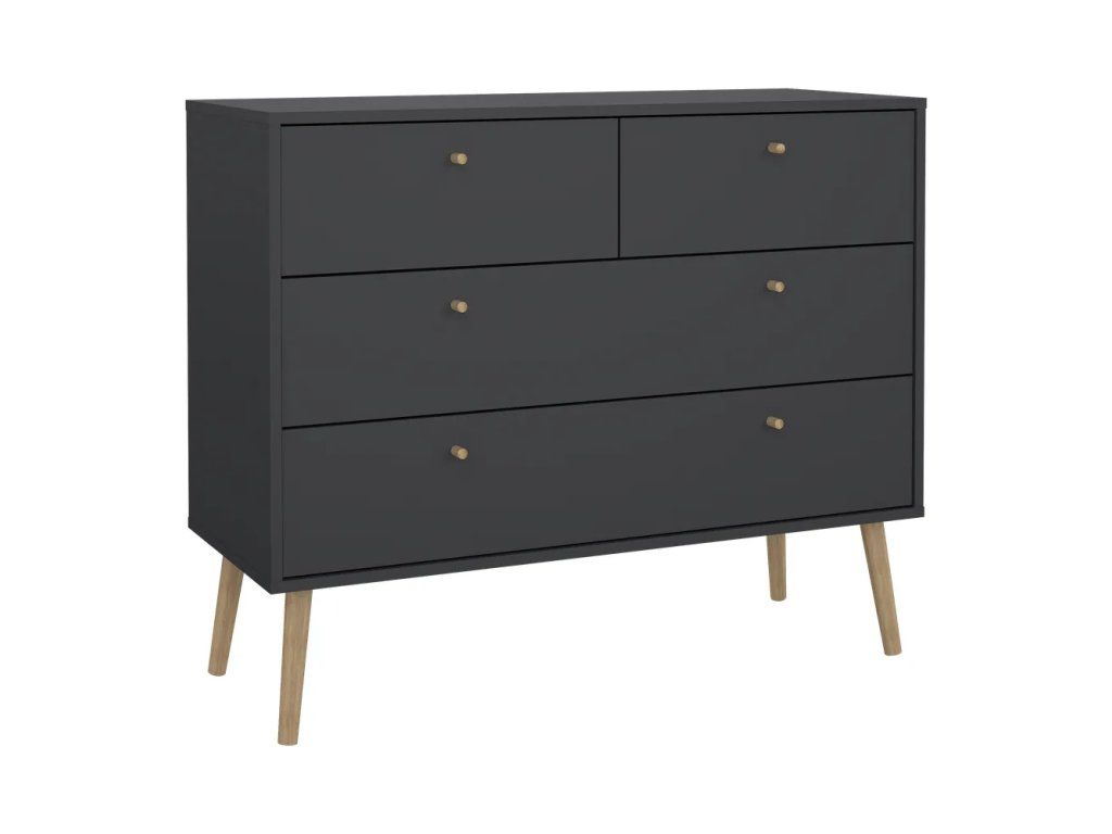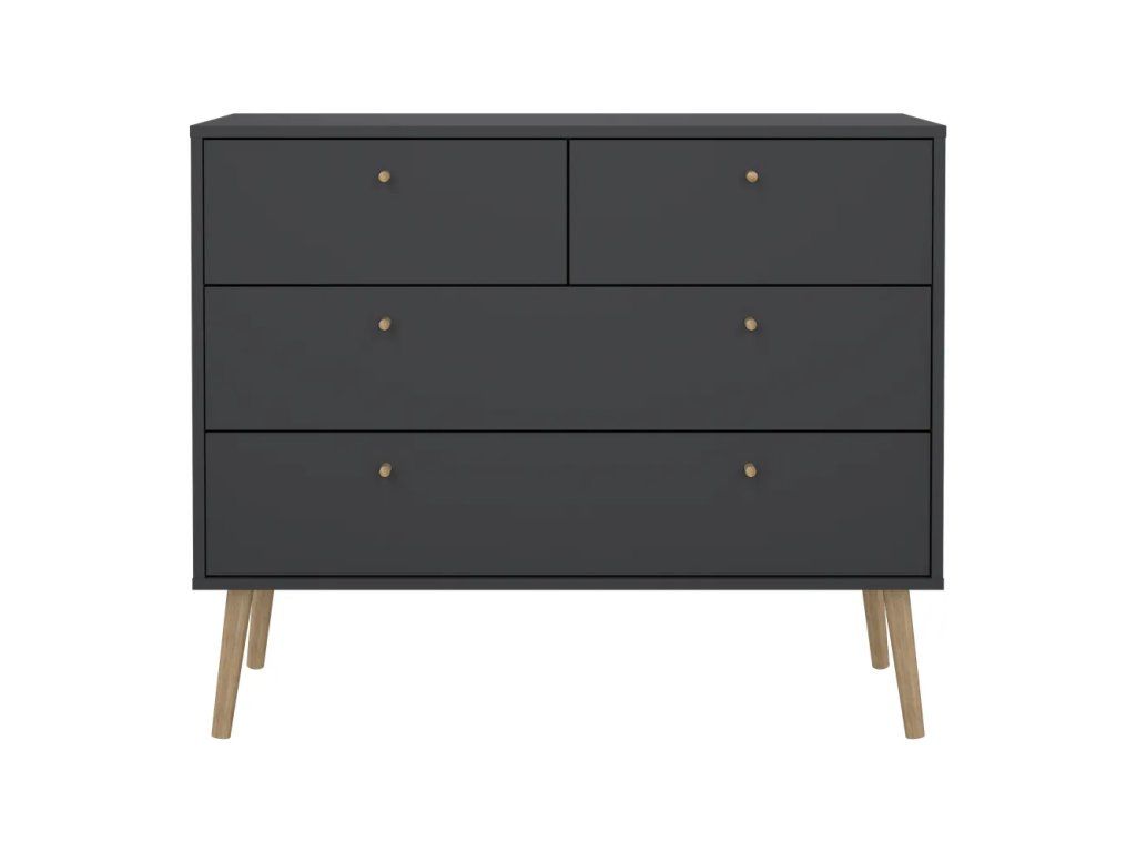 Barva Antracitová Šířka 98.7 cm Výška 81.7 cm Hloubka 39.1 cm Váha 29.4 kg Nosnost 45 kg Výška nohou 21 cm Materiál Dřevotříska Dekor Matný Povrchová úprava Folie Materiál nohou Masiv dub Barva nohou Světlé dřevo Materiál úchytek Dřevo Materiál zadní části Dřevovláknitá deska Vlastnosti Se šuplíky, na nožičkách Péče Čistit suchým hadřikem, nepouživat agresivní a abrazivní čističe Systém zavírání Bez tlumeníDoplňkové parametry