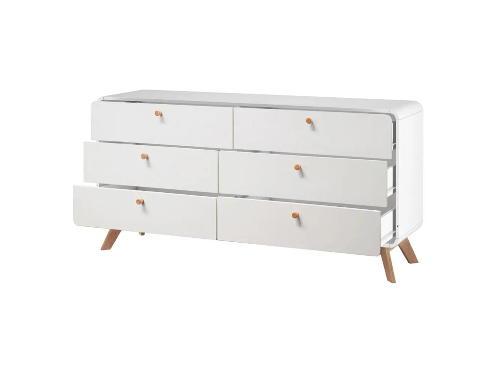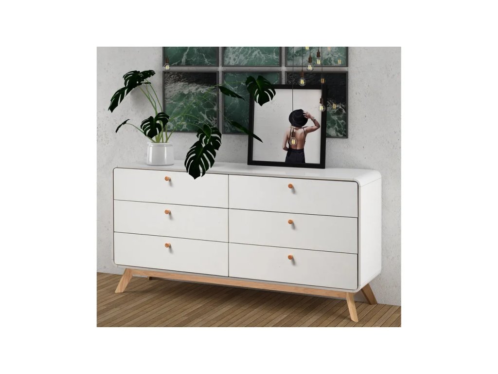 Barva Bílá Šířka 150 cm Výška 74 cm Hloubka 39 cm Váha 50 kg Výška nohou 15 cm Materiál MDF Dekor Matný Povrchová úprava Folie Materiál nohou Dřevo masiv Barva nohou Světlé dřevo Materiál zásuvky MDF Povrchová úprava zásuvky Folie Materiál úchytek Dřevo Materiál zadní části Dřevovláknitá deska Vlastnosti Se šuplíky, na nožičkách Péče Čistit vlhkým hadříkem nebo houbičkou, nepouživat agresivní a abrazivní čističe Systém zavírání Bez tlumení
