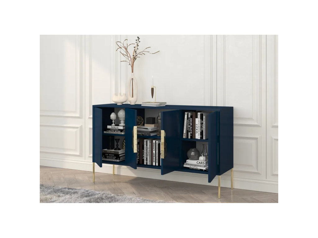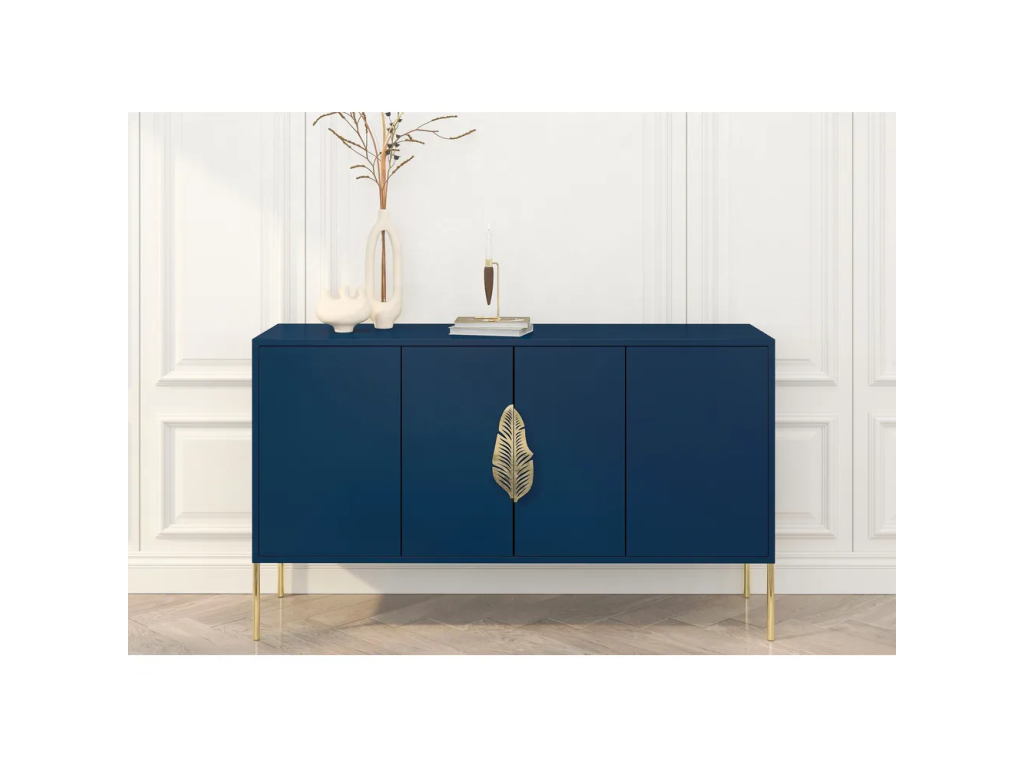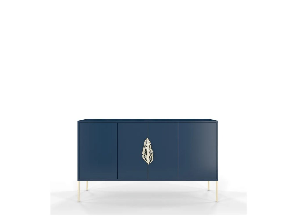 Barva Tmavě modrá Šířka 138 cm Výška 79 cm Hloubka 40 cm Váha 46 kg Nosnost 70 kg Výška nohou 20 cm Materiál MDF Dekor Matný Povrchová úprava Lamino Materiál nohou Kov Barva nohou Zlatá Materiál poliček MDF Povrchová úprava poliček Lamino Materiál dvířek MDF Povrchová úprava dvířek Lamino Materiál úchytek Kov Materiál zadní části Dřevovláknitá deska Vlastnosti S dvířky, na nožičkách Péče Čistit suchým hadřikem, nepouživat agresivní a abrazivní čističe Systém zavírání Push to open (bezúchytkové otevírání)Doplňkové parametry